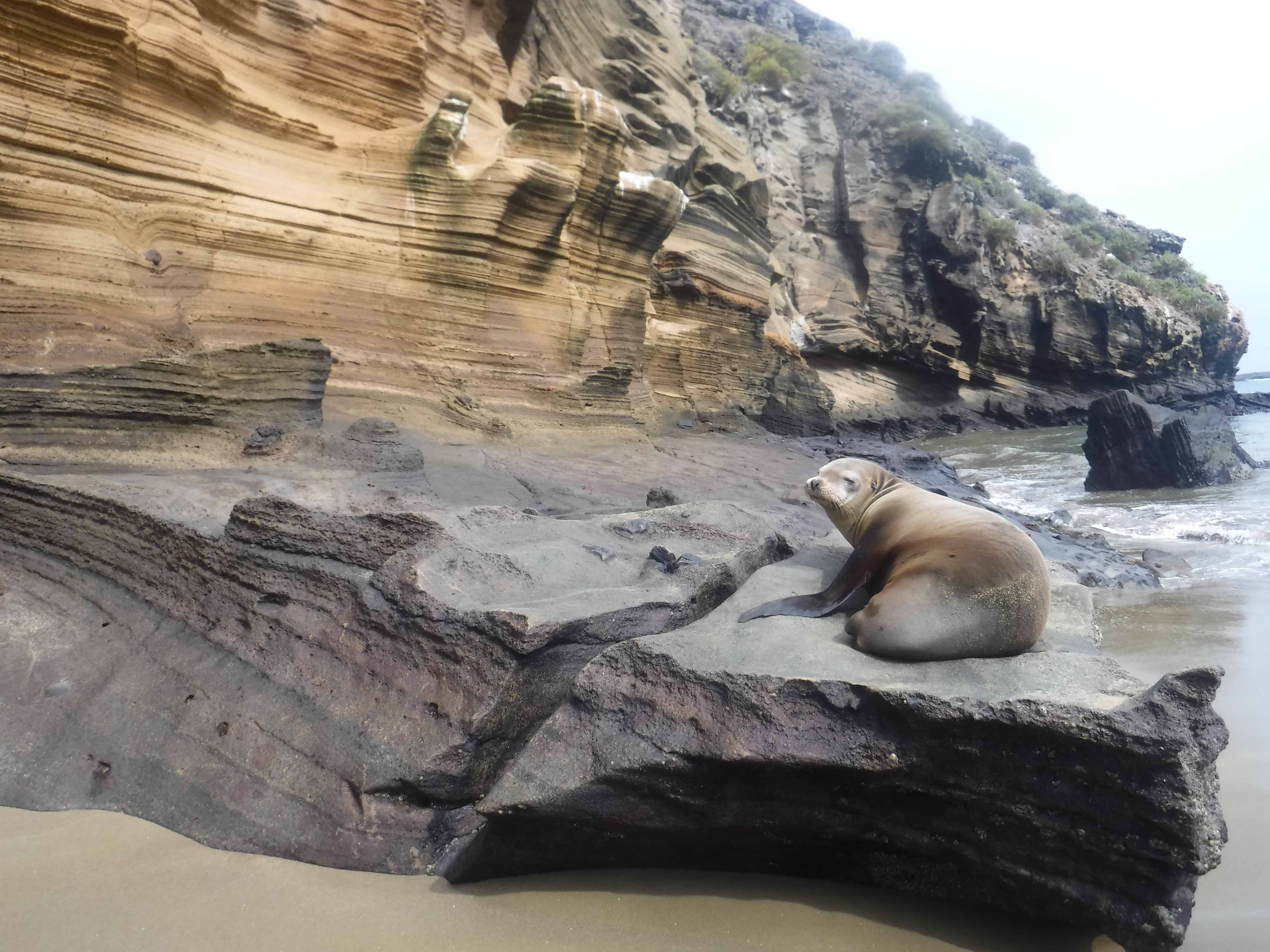 As the sun rose in the eastern sky, the National Geographic Quest was making her way north through Johnstone Strait. Looking to the east we watched the sun make its way up behind the coastal range of the mainland of British Columbia. The light was shifting from bright peach to a deep golden hue as the sun moved up and over the landscape bringing light to our surroundings. To our left, Vancouver Island and its mountains were shrouded in mists which deepened as we moved north. Shortly after breakfast the Quest was shrouded in fog. Many of us remained on the bow watching common murres darting in and out of deep fog banks.