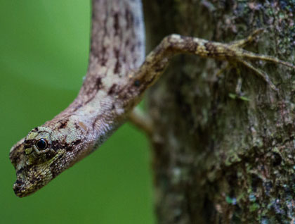 For the second part of our daily activities, we visited Nauta Caño. Life is abundant along this creek. There are vast areas covered by secropia trees and a number of bird species and monkeys can be found here. The best way to explore these small tributaries is on board skiffs. This is the high water season, and most of the forest is entirely flooded. We were lucky today regarding sightings. We saw birds from up in the canopy and also from mid forest, and plenty of fish-eating birds, such as king fishers, egrets and terns. While exploring Nauta Caño, we also encountered a troop of squirrel monkeys!