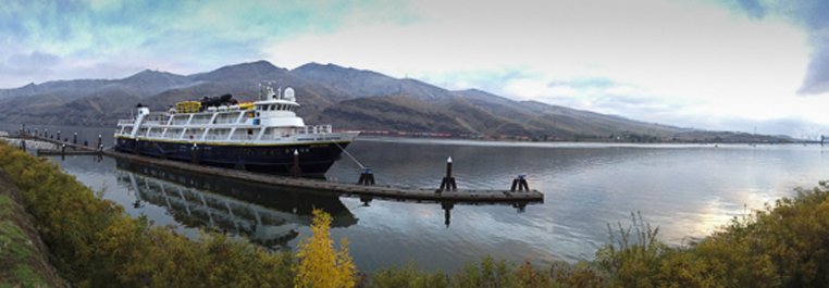 As hoped for, we encountered many humpback whales this afternoon. This included individual adult whales, mothers and calves, and a few trios of animals including two adults and one calf. Much of the afternoon was spent watching whales. Actually, the whales must have found us a curiosity, because they were watching us as well, and approached the ship several times to have a closer look. In the accompanying photograph, one can see three whales (two adults and a calf) right next to the ship. They purposely swam over to the ship and then cruised alongside our vessel, spraying the guests on starboard side with their blows. People were cheering and yelling to the whales as they looked up at us. It was awesome! Many more whales were sighted during the remainder of the day, but we needed to keep on track in order to reach our pilot station in good time in a couple days in Rio de Janeiro.
