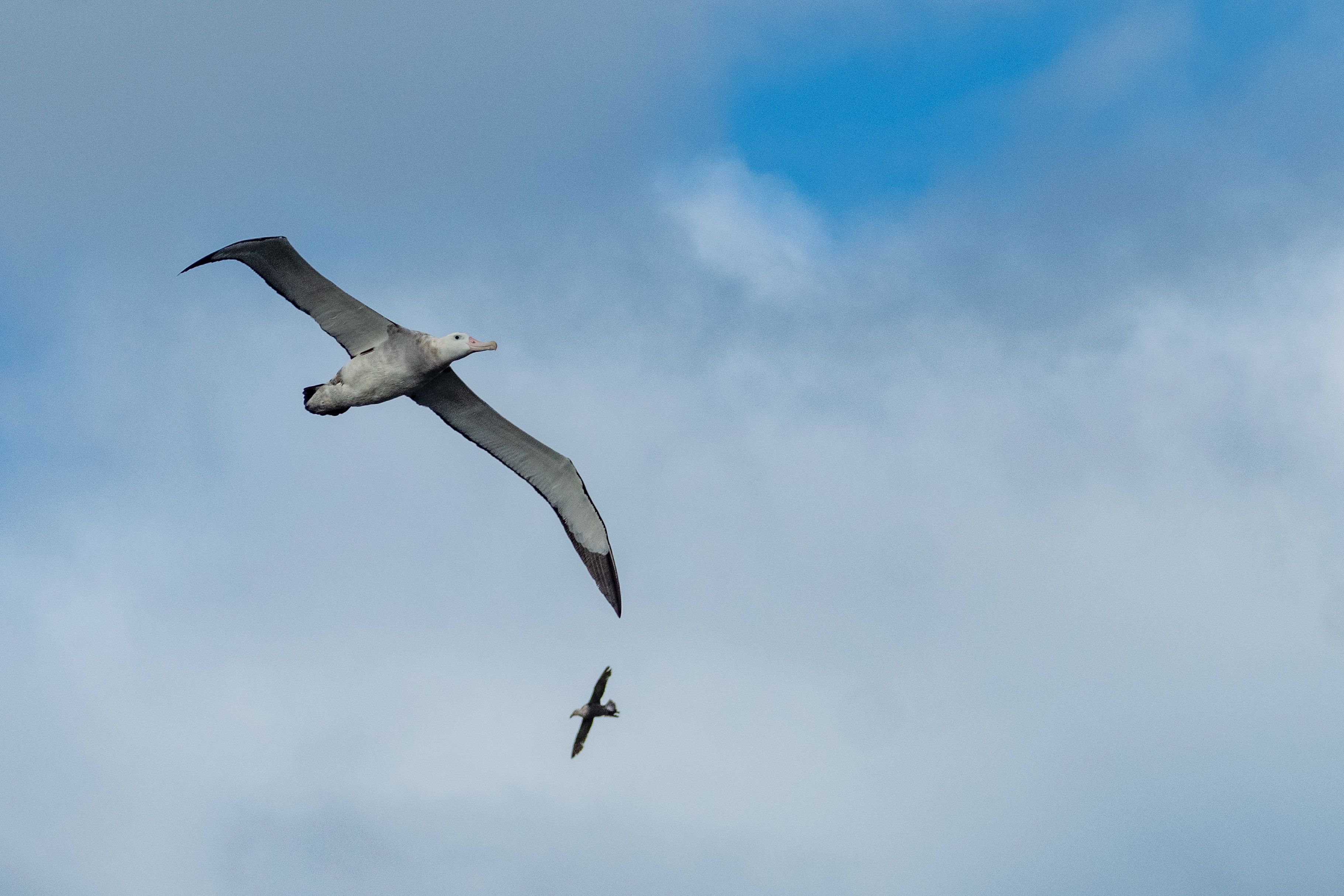 The bathymetry of the area over which we were traveling was particularly interesting; a subduction zone between the South American and Scotia plate has created a huge deep trough, so we made our way over incredibly deep water. Many fantastic bird species greeted us on our journey—great shearwaters, soft plumage petrels, and juvenile black-browed, grey-headed, and wandering albatross all paid a visit. Perfect timing then for a talk on the birds of the Falklands by naturalist Santiago. Santi’s excellent talk not only covered some of the beautiful birdlife that we are hoping to encounter but also a now sadly extinct and very mysterious fox, the warrah—a species driven to extinction by the first settlers to the islands.