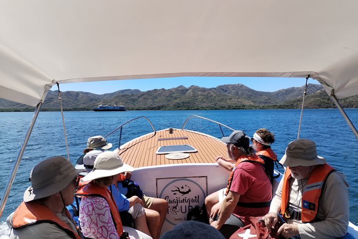 After cruising north along the Pacific coastline overnight, our day began in Bahía Santa Elena (Santa Elena Bay). The bay borders the Área de Conservación Guanacaste, recently designated a Marine Management Area. Such a designation means the bay will be reserved for specific purposes, including the conservation of marine life, the fostering of recreation and tourism, and the sustainable use of its resources, including fishing. With its completely undeveloped shoreline, the 732-hectare bay is a breeding area for many marine species, including dolphins, whales, and turtles, as well as the endangered whale shark and several species of rays. Increasing coastal alteration and overfishing have threatened the bay. With participatory management and conservation, the bay’s designation as a Marine Management Area should aid in its prolonged protection. The process involved the whole community, including the artisanal fishing, sport fishing, longline fishing, and tourism sectors, together with town officials, government agencies, and nongovernmental organizations.