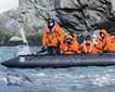Today we awoke on the National Geographic Sea Bird while floating in the protected and calm waters of Boca de la Soledad, the northernmost entrance to the beautiful coastal lagoon called Magdalena Bay, which is part of an extensive and complex wetland system present in the western side of the peninsula of Baja California. As we all knew, the gray whales come here every winter to give birth and nurse their calves, so we were eager to explore the lagoon and observe these magnificent, gentle, giant marine mammals. Throughout the day we went out in our inflatable crafts, and accompanied our excited guests to help them interpret the complex and fascinating set of behaviors offered by the whales, including spy hopping, breeching, nursing and rolling. Up to 35 pairs of cows and calves were seen in this section of the lagoon. Whales, as we noticed, can be identified individually by the white, black and gray gradations that form unique patterns on their skin, both in calves and their mothers. No whale is identical to another. This has allowed us to give them names, like Sofia, Maria, and so on, for the enjoyment of everyone.