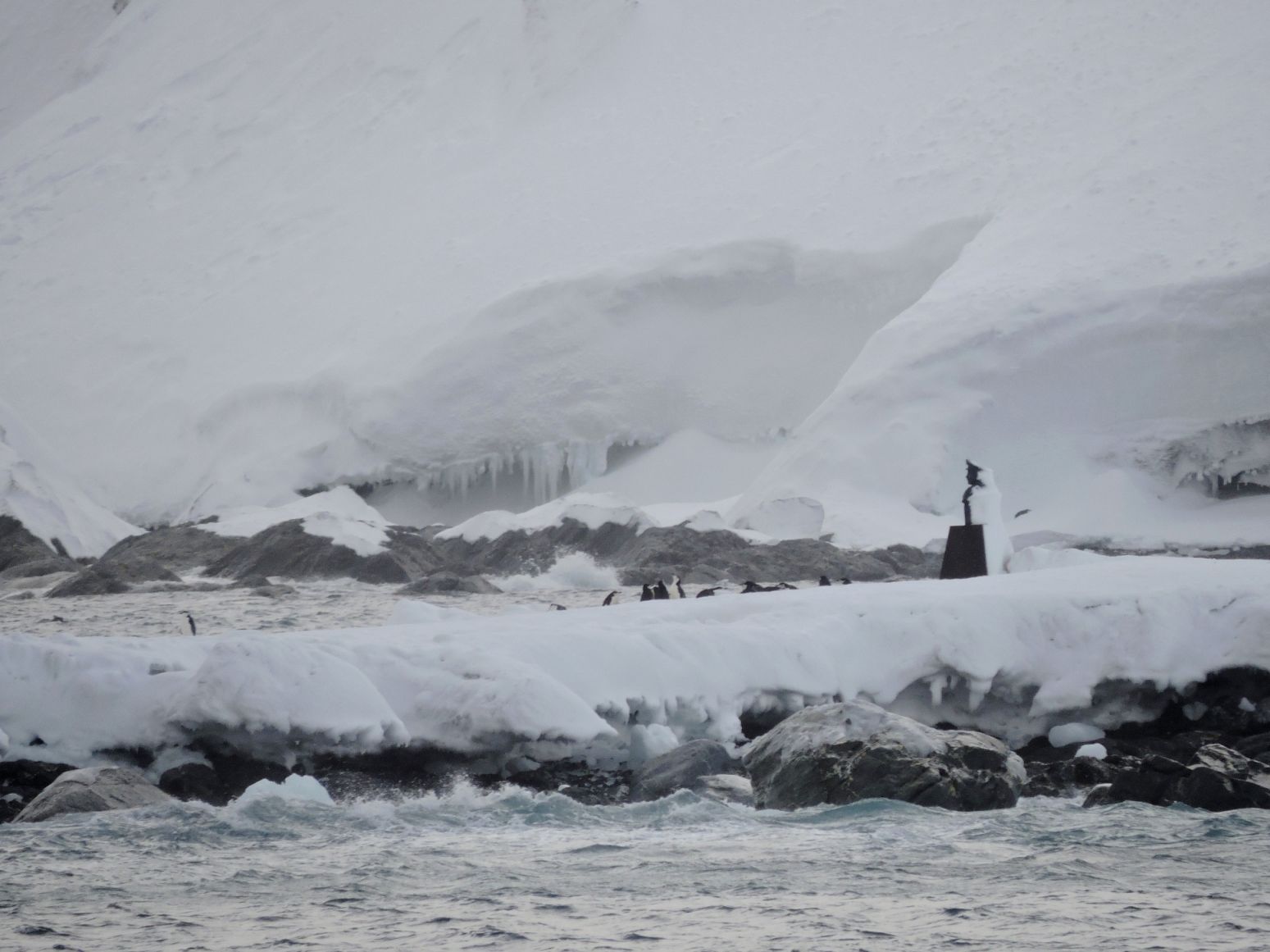So, this morning we visited Brown Bluff, home to colonies of Adélie and gentoo penguins. Massive, brown cliffs of volcanic origin tower over the beach. Well, there is not a beach right now, it is high tide and above the water there is snow and some ice. Good news for me this morning, as I’m driving a Zodiac and I will not need to ding a prop on a submerged rock, there are plenty of rocks here, but they are deep now.