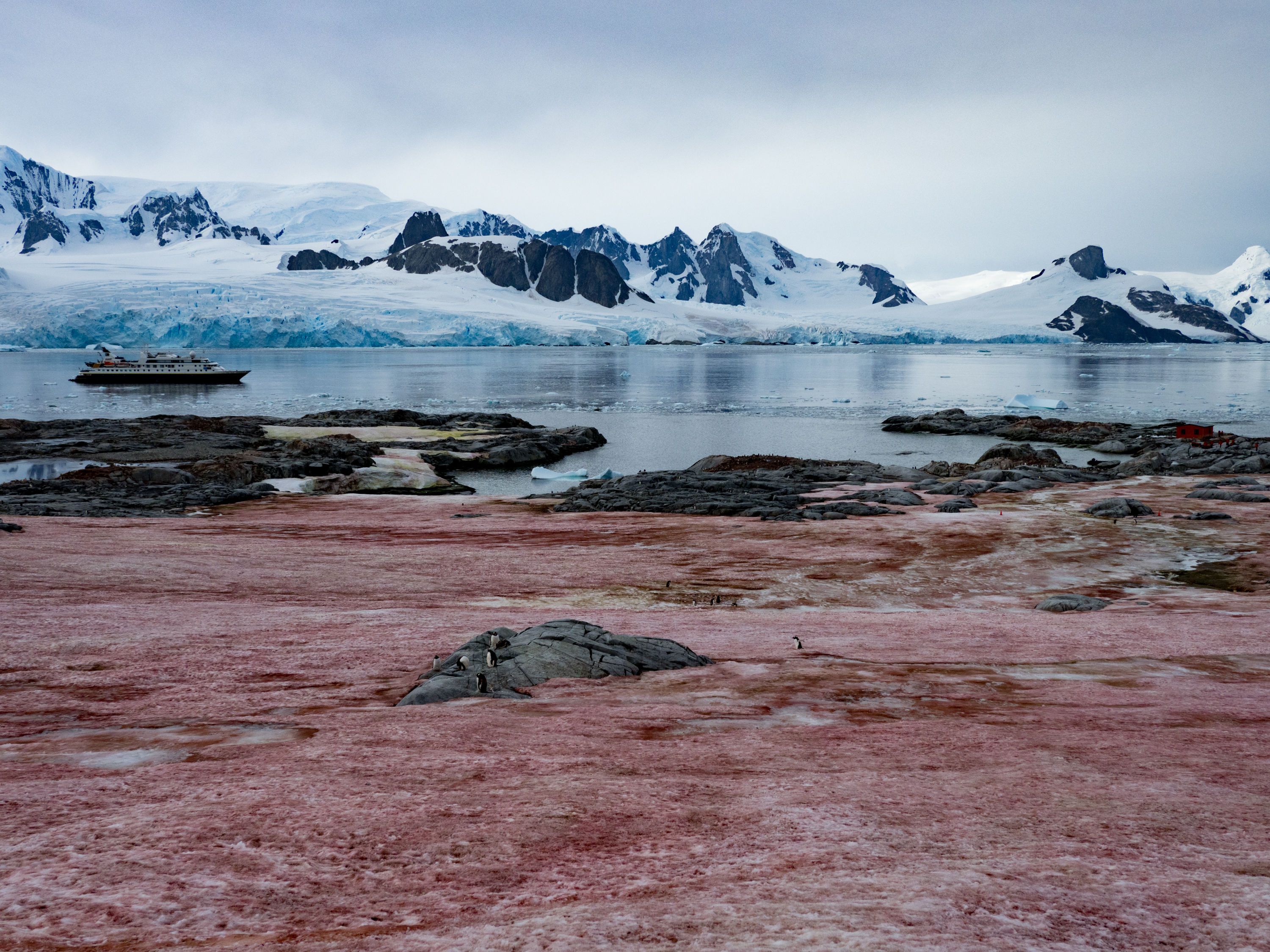 Our day started in the north part of the Antarctic peninsula, with some true Antarctic weather: snowflakes surrounded the ship and lent a mysterious atmosphere to our navigation. Soon we crossed Esperanza Base, an Argentinian research station that is inhabited year-round. Less than a month ago, Esperanza recorded the highest temperature record for Antarctica—18.3 °C, or 65 °F, which was only one degree lower than the temperature recorded in Kailua, Hawaii, that same day.
