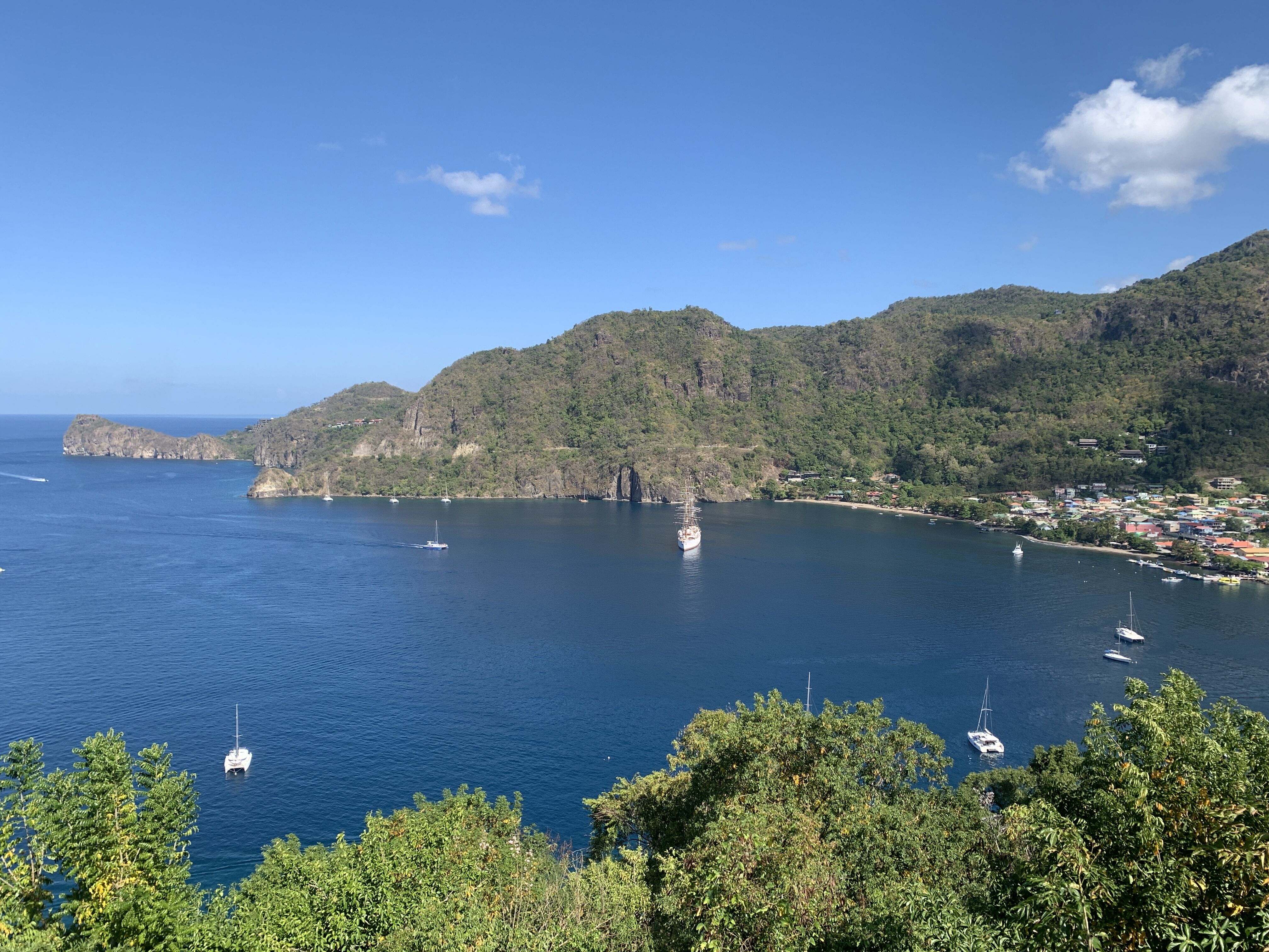 With a gentle easterly breeze this morning, we had good conditions for setting the sails as we raised anchor to depart Port Bequia en route to Carriacou, an island of Grenada. There are around 30,000 square feet of sail available to the captain on Sea Cloud and he set the majority of them today which made for a great sight with my drone’s eye view of the ship.