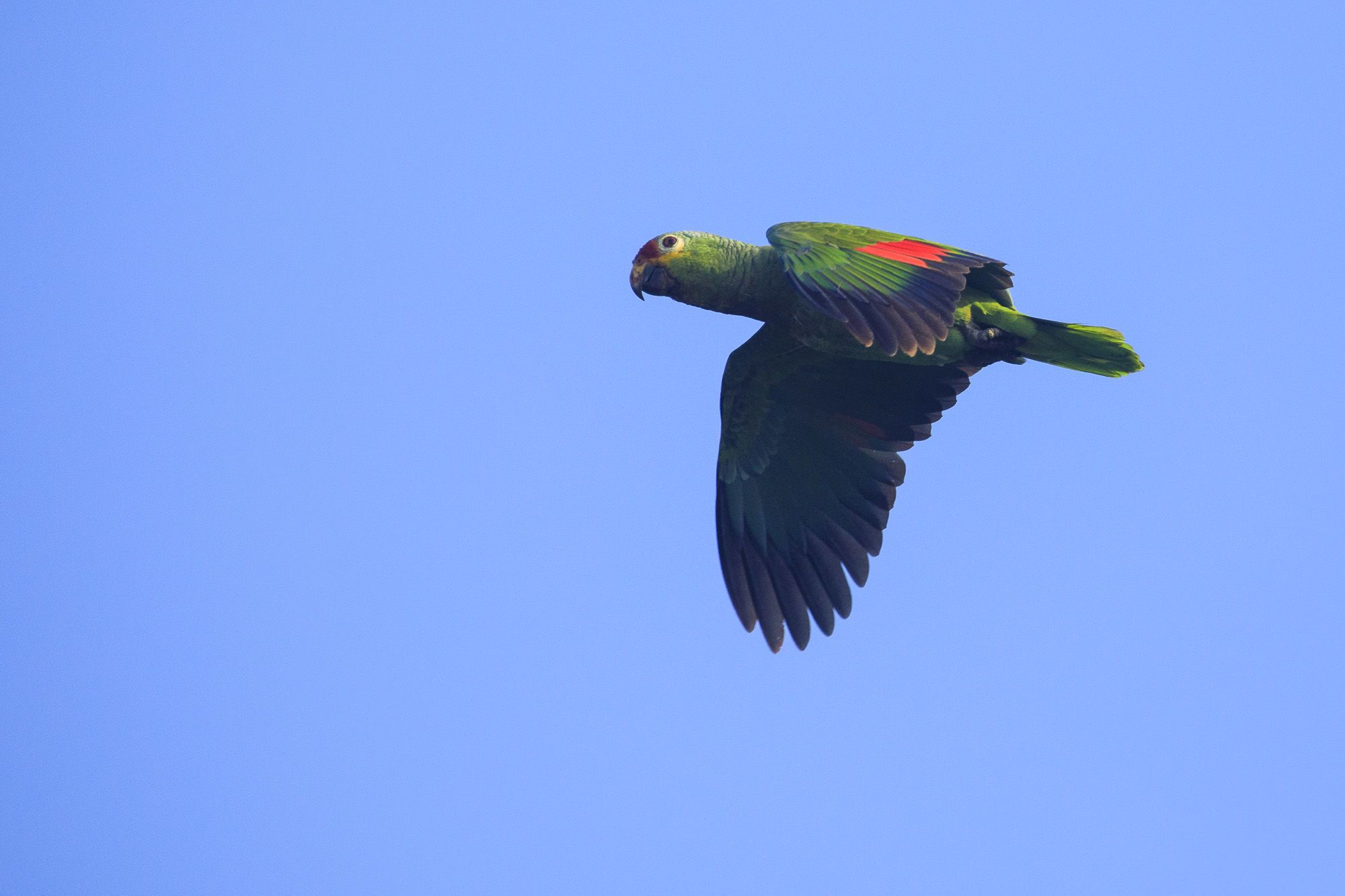 In the early afternoon, we kayaked around Nauta Caño. Conditions were ideal. The sky was a bit overcast, but the water was calm, and many birds flew around us. After kayaking, we went on a skiff ride along the river. We spotted several birds of prey at close range from the skiffs. Almost at sunset, we spotted a monk saki monkey perched in a high branch at the top of a tall tree.