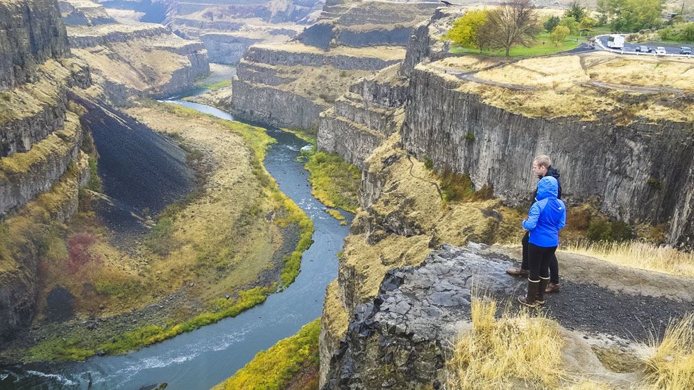 Our first stop was at Asotin (Place of Eels). Here we marveled at a beautiful outcrop of complex columnar basalt where perfectly formed columns rose above the river. Soon we were on the free-flowing Snake River. High cliffs formed by layer after layer of basaltic lava flows rose high above us. As we proceeded upstream on this cloudy morning, fall colors brightened the landscape as mulberry trees glowed golden and sumac smoldered crimson on the rocky slopes.
