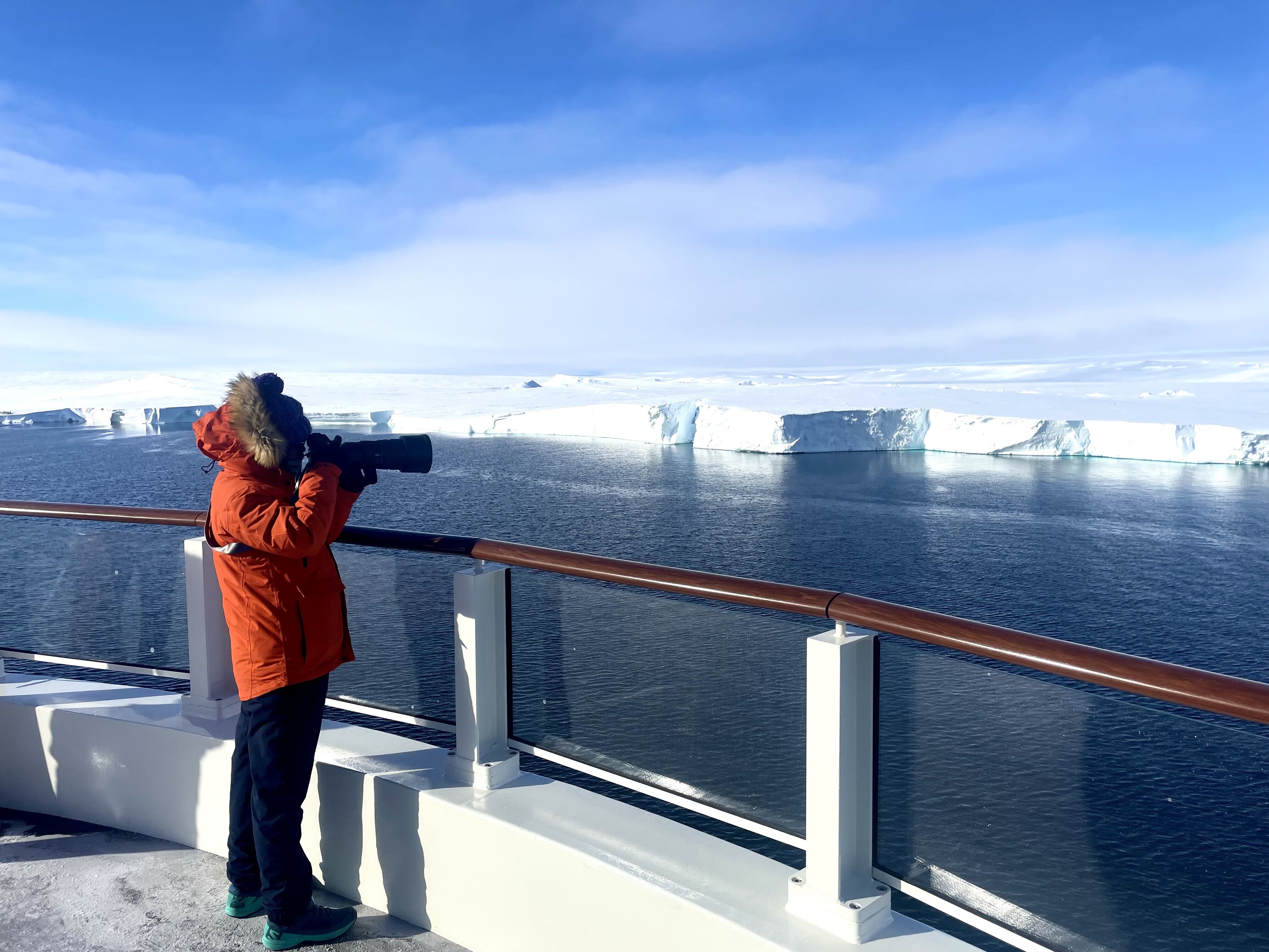 For our final adventure, we parked in Paradise Bay for Zodiac cruises by glaciers and icebergs, all dusted with a fresh layer of snow. Antarctic shags learning to fly, the thunderous crashing of calving ice into the still sea surface, even a singing leopard seal, were some of the highlights of the afternoon. There was also a surprise hot chocolate treat to raise a toast to the friendships made and experiences shared during this wonderful voyage to the White Continent. We entered the Drake feeling accomplished and full of inspiration and memories to last a lifetime.