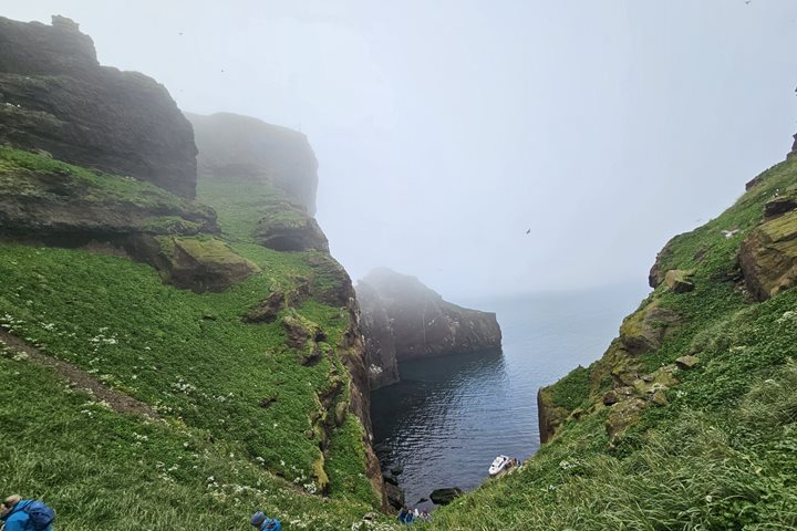 Visiting Djúpavík, a remote and captivating village in Iceland’s Westfjords, is an experience that feels like stepping into a forgotten world. The journey to Djúpavík begins with a breathtaking sail through the deep fjords, where towering cliffs rise dramatically from the sea, and the vastness of the Arctic landscape unfolds in every direction. The sailing in itself is an adventure, with the crisp sea air and the occasional sighting of northern fulmars and black-legged kittiwakes adding to the allure.