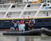During the night, National Geographic Resolution traveled quite a distance along the northwestern parts of Spitsbergen and in the morning stopped near Sarstangent, a narrow and long sand spit where walruses often haul out. The scouting from the bridge confirmed their presence. For the morning activity, guests were offered landing with, visiting, and observing the walruses resting on the beach. From time to time some of the walruses, probably well rested, moved away and disappeared in the water, others replaced them, coming from the water and joining the group on the beach. After lunch the ship relocated to a nearby Kongsfjorden, offering a spectacular view of a couple of glaciers with ice-covered mountains in the background. The guests had options of a strenuous hike to the top of a mountain for a panoramic view or Zodiac cruising. Large numbers of blue icebergs were scattered in the fjord. Nests of kittiwakes and glaucous gulls were attached to a concaving igneous cliff, providing an excellent shelter from precipitation. Curious harbor seals could be seen around the fjord. The nearby glacial front represented heavily crevassed ice and calved every few minutes. After dinner the guests had a chance to watch the presentation of the voyage slide show. However, the day was not yet over. Later in the evening a few blue whales were spotted near the ship, a very rare observation around Svalbard.