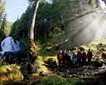 We boarded our trusty expedition landing craft after breakfast to investigate the ice, waterfalls, and surrounding terrain in closer detail. Bright sunlight glinted across the luminous blue bergy bits, but it was still fairly chilly from cool winds rolling down the glacier towards us. Each group of travelers saw slightly different things on our outings. Harbor seals poked their shiny round heads above the surface to watch us pass. We steered clear of those hauled out on the ice to avoid disturbing their naptime. Two harbor porpoises circled our boats and even raced alongside the bow, behaviors very uncommon for these rather shy creatures. The glacier itself was magnificent, with precarious spires called seracs rising from the sea, poised to collapse at any moment. Glacier watching requires patience. One can wait for hours and see no real changes or be lucky and see giant slabs of ice fall all at once from the face. We had some of both. A spectacular calving event generated rolling swells that gently rocked the little boats and the ship itself for several minutes. While we enjoyed the glacier, a boat arrived with crew to serve us hot chocolate and whipped cream. What a treat! Eventually all returned to the Sea Bird to follow the fjord out to its mouth and into the larger body of water known as Stephen’s Passage.