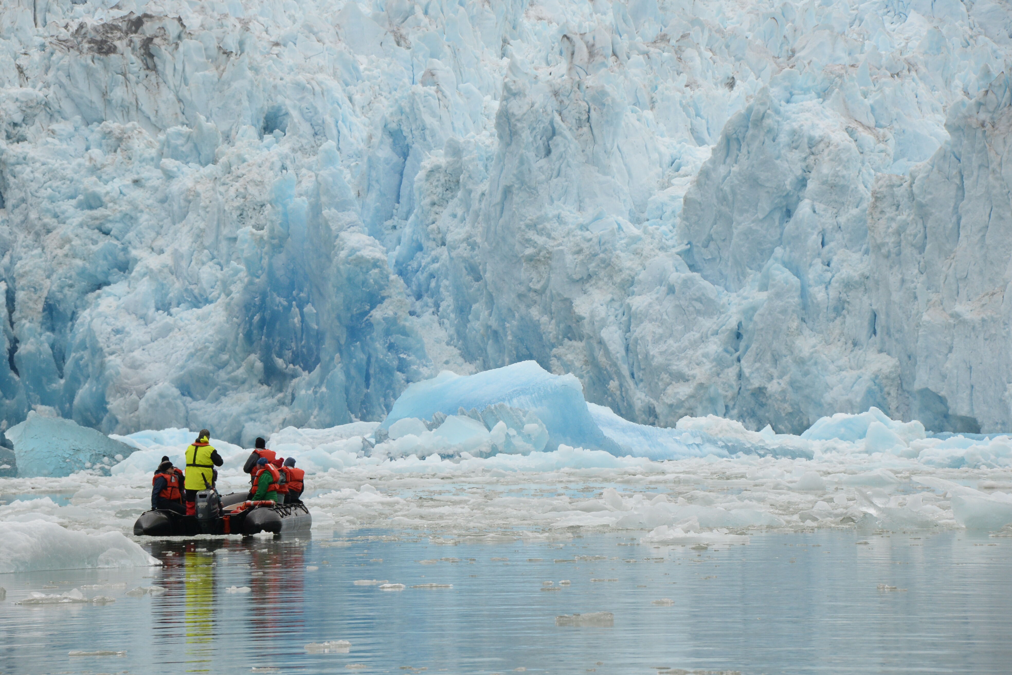 Today, we embarked on a voyage through the breathtaking Endicott Arm, a 30-mile fjord carved by ancient glaciers. As our vessel glided through the jade-green waters, towering granite cliffs rose on either side, with cascading waterfalls fed by melting snowfields. The fjord's serene beauty was punctuated by the occasional splash of harbor seals diving from ice bergs and the distant sight of mountain goats navigating the rugged terrain. Approaching the terminus of the fjord, the awe-inspiring Dawes Glacier came into view. Standing over 500 feet tall and half a mile wide, its icy facade shimmered in hues of blue and white. We boarded Zodiacs to get a closer look, maneuvering through a maze of icebergs, each uniquely sculpted by nature. Suddenly, a thunderous crack echoed as a massive chunk of ice calved from the glacier, crashing into the water below and sending ripples across the fjord—a humbling reminder of nature's power. The journey through Endicott Arm was more than a scenic cruise, it was an intimate encounter with the raw, dynamic forces that shape Alaska's wilderness. The memories of shimmering glaciers, playful seals, and towering cliffs will linger, a testament to the allure of this pristine frontier.