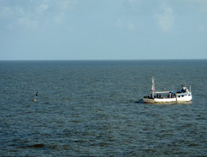 We awaken to a grey morning with the surrounding waters starting to show the turquoise color that Gardner Bay is known for. Snorkelers head to Gardner Island for deep water snorkeling around the islet of Gardner. Invertebrates cover the wall of the submarine island with a kaleidoscope of colors from the soft corals, sea urchins, hawk fish, and black tipped cardinal fish. A young sea lion dives in and decides that we are worth “playing” with. After blowing bubbles at our faces this young sea lion takes various fins into its mouth and tests them to see if they could be worth its playtime. The sea lion decides that a sea cucumber is more amusing then us awkward humans and heads off. After a quick change we head to the fine coralline sand beach where we catch up with our fellow explorers. Kayakers paddle along the coast among pinnacle spires and pacific green sea turtles with the light of the sun starting to break the cloud cover. No less than three hundred sea lions lay upon this paradise as they rest between their foraging runs into the deep. Española mockingbirds flit among us and dig into the sand searching for their daily subsistence. Newborn sea lion pups search for their moms as they blurt out sounds that we would guess translate into “mother.” The sun makes its appearance at last, as we return to our floating home with bright turquoise colors finally showing us that nature has no comparison.