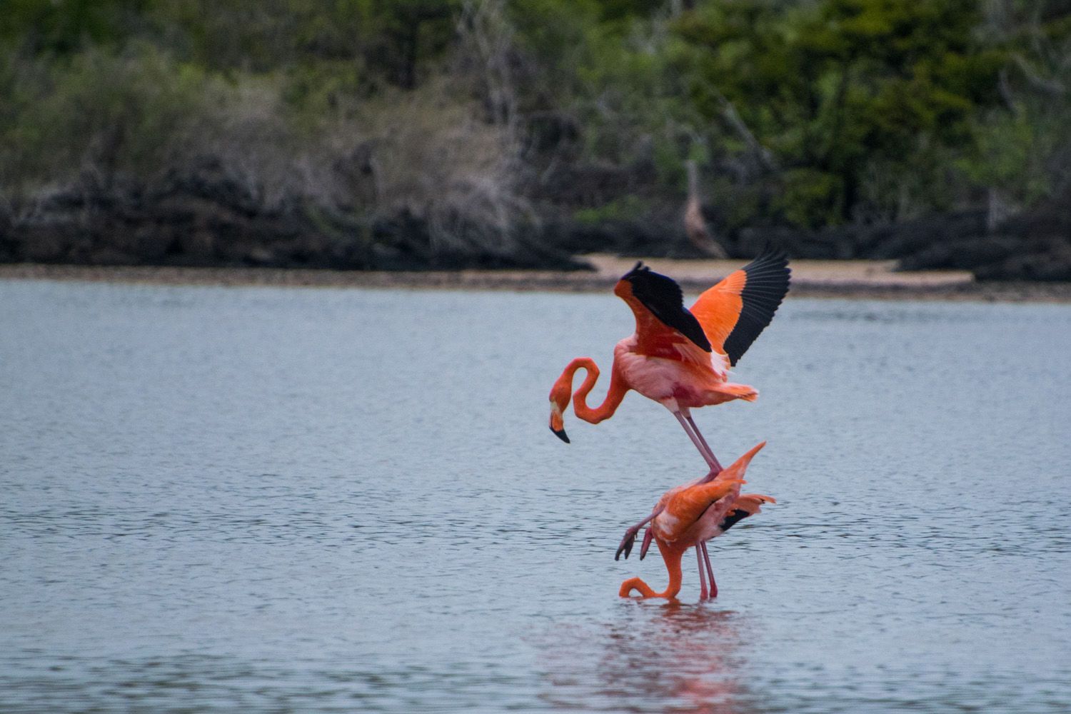 In the afternoon, the National Geographic Islander circumnavigated to the West to arrive to Punta Suarez; as soon as we landed, marine iguanas and sea lions captivated our attention due to their tameness and uniqueness. Walking inland, we observed breeding colonies of different species of birds such as Nazca boobies; swallow tailed gulls and blue-footed boobies, but probably the most excited part of the hike, was when we reached the waved albatrosses nesting area. We observed them making their singular mating dance, synchronizing their moving and sky pointing their bills producing a well-elaborated ritual before mating.