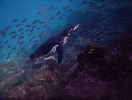 In the afternoon, we navigated further north and across the Bolivar Channel to anchor by a place called Punta Vicente Roca, on the Isabela coast. Steep lava walls surround the anchorage, making us feel like we had suddenly been transported to some Nordic fjords except for the warm weather! Punta Vicente Roca is a marine site, and the plan for the afternoon was to go there to do some deep water snorkeling. Due to the abundance of sea weed, many Pacific green sea turtles come to this place for foraging. Being in the water surrounded by dozens of these gentle creatures was definitely a surreal scene as well as an unforgettable experience!