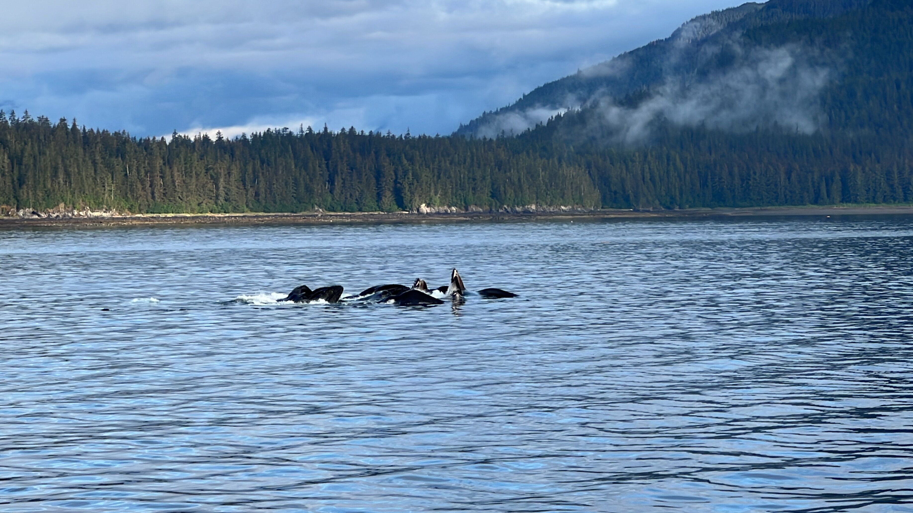 Cruising throughout the night, we awoke to the sheer granite walls of Endicott Arm rising thousands of feet above our heads. Clouds filled the sky beneath the peaks of the surrounding mountains in the fjord, more appearing as we approached Dawes Glacier. We maneuvered the ship through an open path in the ice to the glacial face. Our guests were able to spend at least an hour at the face of the gorgeous glacier. We got as close as is legally possible. The sun was shining behind the glowing blue ice as we crossed back and forth. Pupping season fully underway, we were able to view mother harbor seals nursing their young on floating blocks of ice. Our guests were surprised by the arrival of hotel staff in Zodiacs. They were dressed as Vikings, and they gave us spiked hot cocoa.