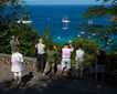 The white coralline beach and the red mangroves are the nesting place for red footed boobies. Minor frigate bird males are beginning with the mating ritual again today; a few bachelors are displaying their half inflated pouches to females that don’t seem to be particularly interested in them yet!
