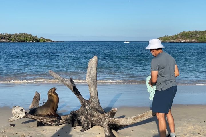 A day of hiking on Genovesa Island under the warm tropical sun is a pristine paradise. During the morning we explored Darwin Bay, surrounded by red-footed boobies and frigatebirds, while the fresh ocean air and salty breeze accompanied us. Despite the sparse vegetation, the contrast between the volcanic rocks and the green mangroves creates a unique landscape full of life, with seabirds flying over our heads. In the afternoon, at Prince Philip’s Steps we saw Galapagos sea lions and fur seals resting on the rocks, and at the end of the trail a short-eared owl hidden among them. The gentle breaking of the waves and the songs of the birds immersed us in the serenity of this isolated corner of the world, where nature feels vibrant and pure.