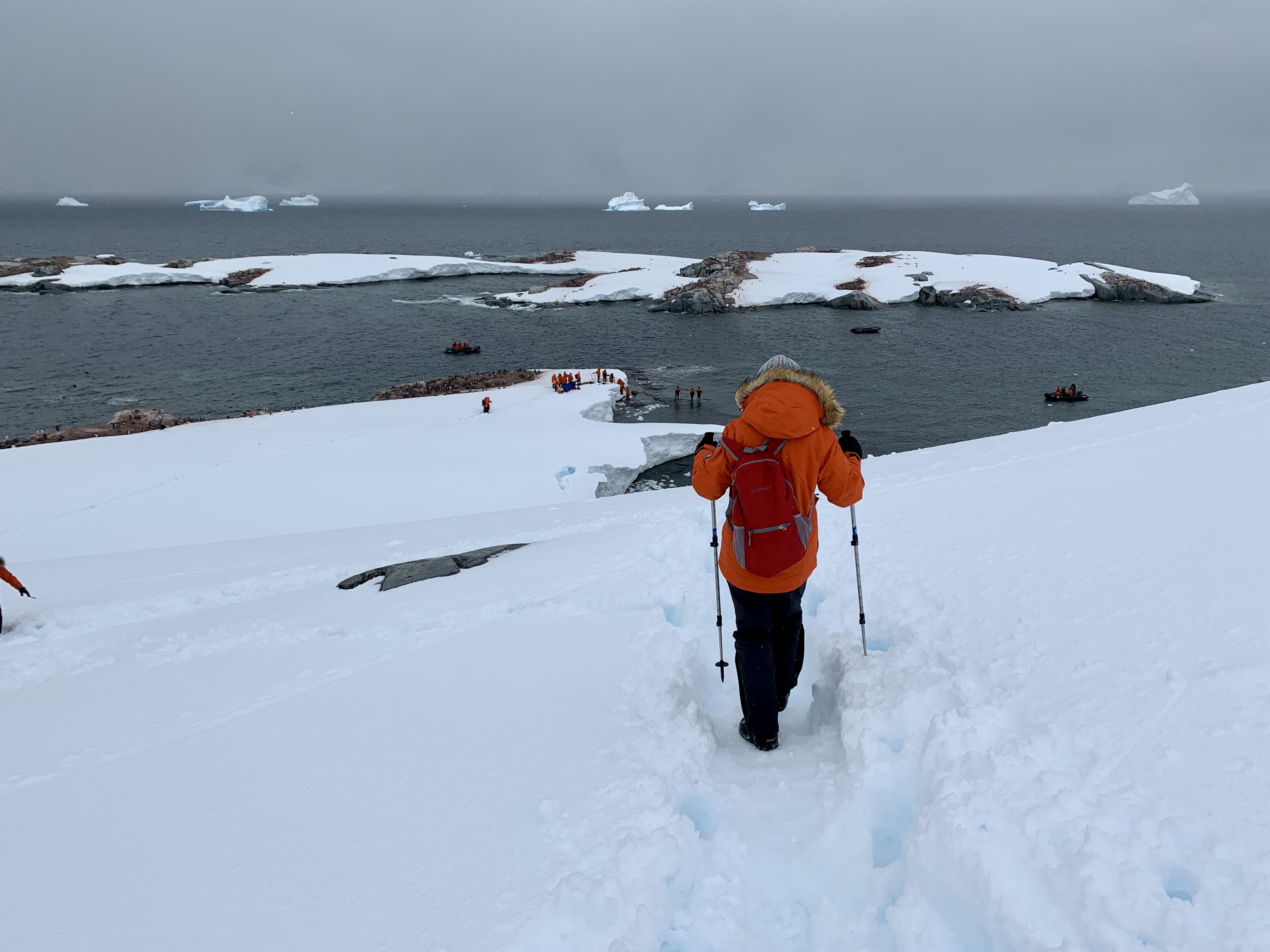 We arrived to find manageable winds and currents, allowing us to have a wonderful afternoon in kayaks and Zodiac cruises. This is the site of the wrecked Guvernoren, a whaling ship that sunk in 1915 due to a fire onboard. Kayakers explored the wreck, observing that Antarctic terns have made their nests in the many dry nooks and crannies above the waterline. Beautiful layers of ice and snow created a backdrop perfect for photos and for those quiet moments to take it all in from a kayak just inches above the water.
