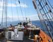 Our first stop was South Marble Island where we got our first look at puffins (amongst other bird species) and observed quite a congregation of Steller sea lions both in the water and hauled out on the rocks. A humpback whale passed us as we steamed south for Tidal Inlet just to add to the mélange of wildlife sightings of the morning. In Tidal Inlet a bear was spotted but chose to hide from our seeking, but we were rewarded as we came out of the inlet and rounded the bend towards Gloomy Knob. A beautiful coastal brown bear combed the shores with a determined pace and soon took to the hills where another bear was then spotted. With not a cloud in the sky, an incredibly rare event for this wet corner of Alaska, most everyone took advantage of the morning either on bow or stern.