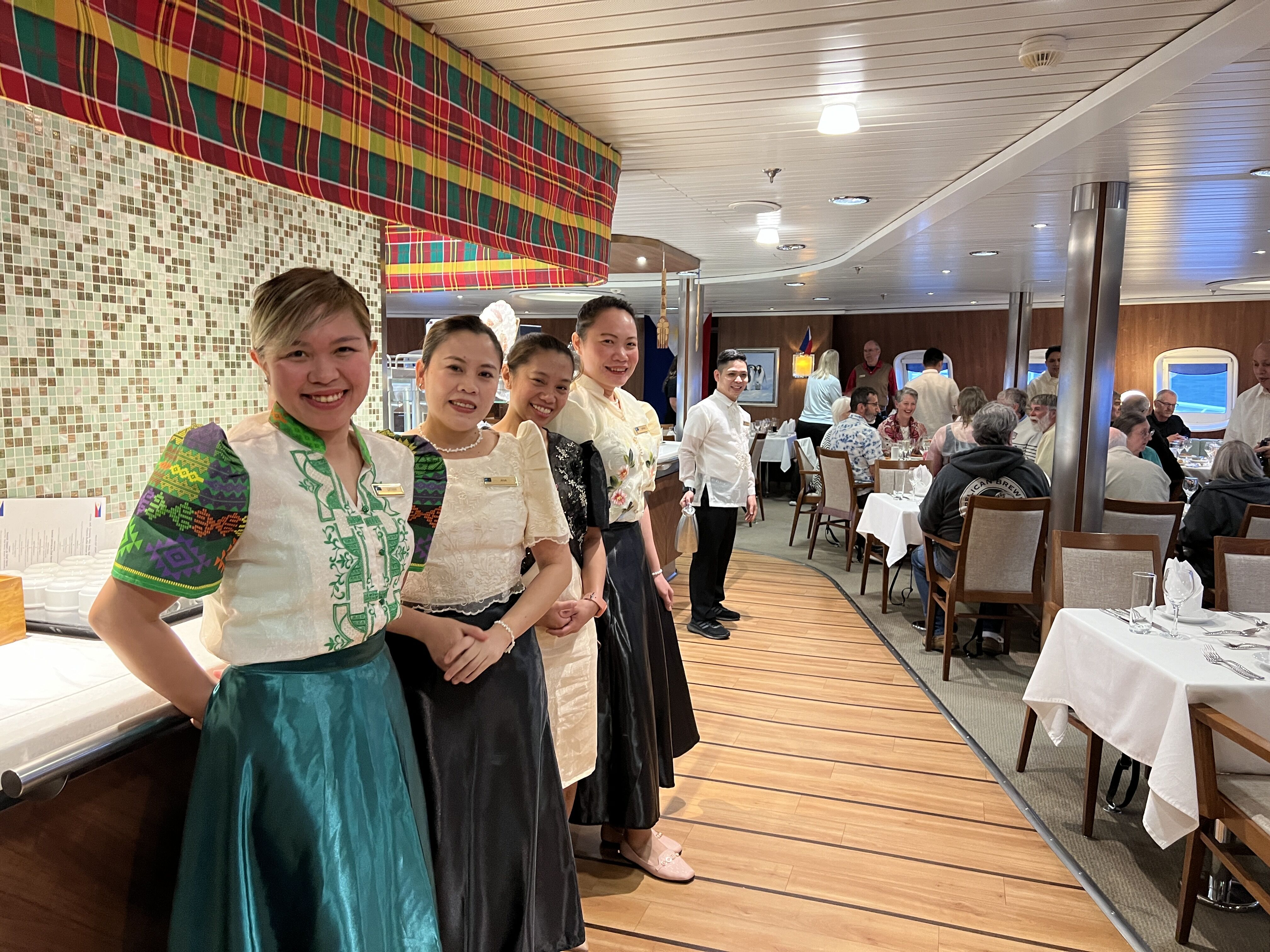 And so we awoke this morning to our daily announcement to learn that our nearest point of land was Cape Town, South Africa. Our journey from Cape to Cape may be nearing its final Cape, but the excitement at sea has not ended. Once again, we filled our day with a variety of presentations from the staff – from stories about making this crossing under sail, to learning about sustainable seafood, to live demonstrations about the mammalian dive reflex, to expert advice on telling a story with our photos of this expedition. To round off our day, we shared one final natural history recap before being treated to an extraordinary Filipino dinner – complete with a galley tour! – and a wonderful show by National Geographic Explorer’s crew band, The Spice Boys & Girls!