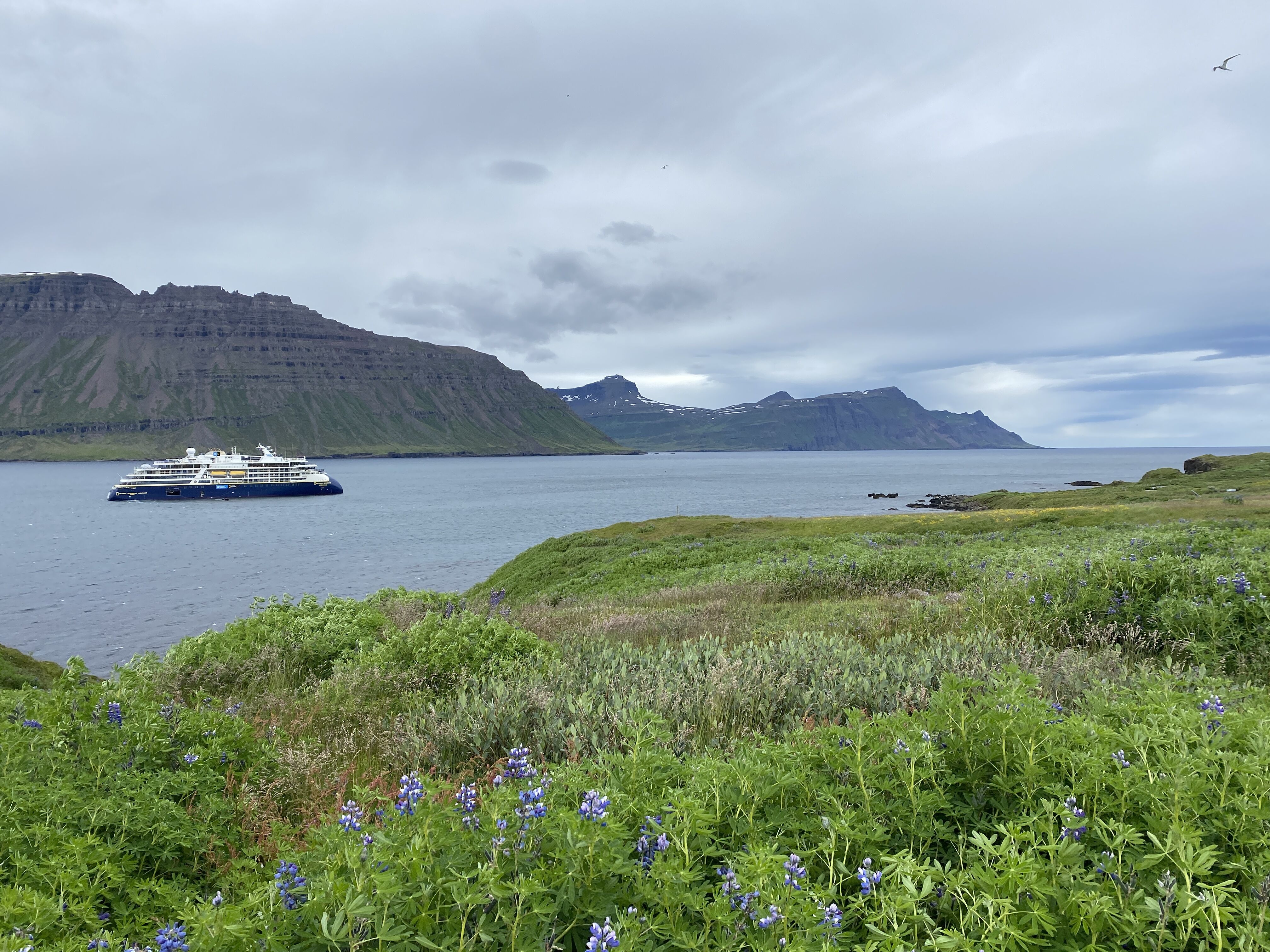 Greetings from Iceland! Today we continued our circumnavigation of this land of fire and ice, Iceland. National Geographic Explorer pulled into Djupivogur Harbor at 7:00am to a nice cool and calm morning greeting. Plenty had been planned for today, with guests choosing between a full day excursion to the Jokulsarlon Glacier Lagoon, a black sand beach hike, a valley of the waterfalls 4x4 Jeep excursion, and a cultural walk. Guests were thrilled to get out and adventure in this eastern side of Iceland. Again, the weather was brilliant with periods of blue sky appearing through the clouds and the sunrays. I had the pleasure of accompanying our guests to the Jokulsarlon Glacier Lagoon, which entailed a scenic bus excursion to the lagoon of icebergs, an amazing walk along Diamond Beach, and a very well-prepared Icelandic lunch before heading back to our home away from home, National Geographic Explorer. Lindblad Expeditions is about sharing unique moments and experiences and today was one of those days. It was absolutely beautiful.