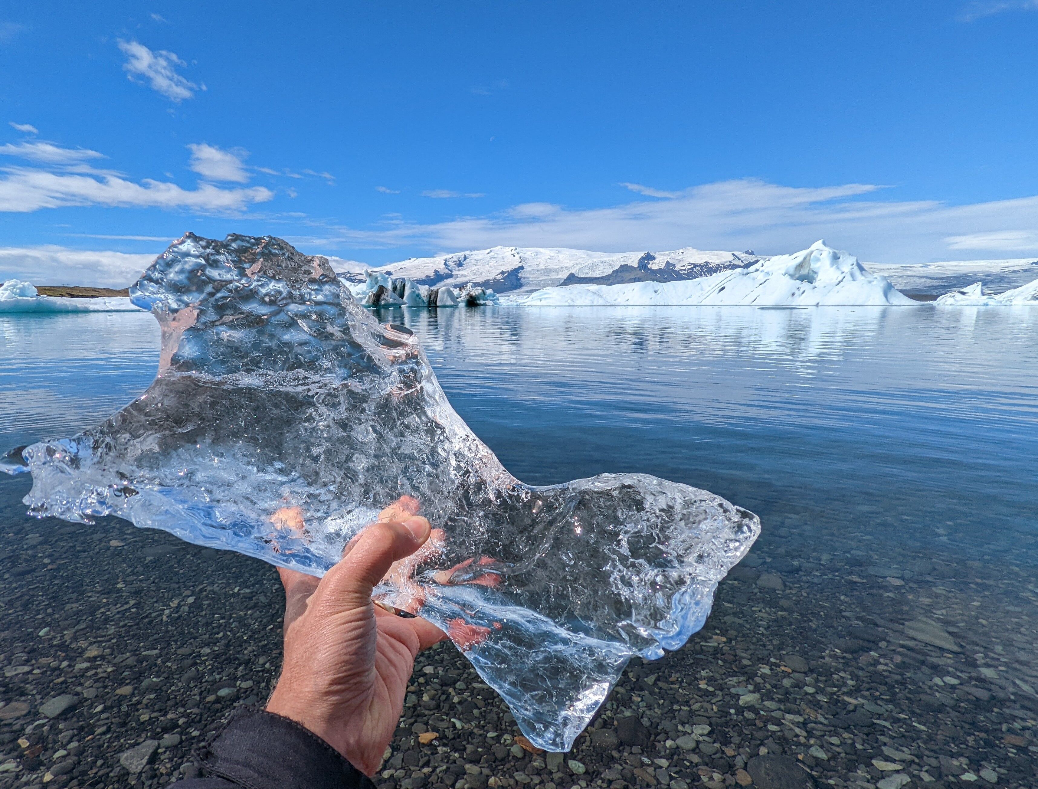 Today was our last day in Greenland, and we spent it visiting the UNESCO World Heritage Site of Jakobshavn Glacier and the Ilulissat Icefjord. Jakosbshavn Glacier is one of the most active glaciers on earth. Fed by the Greenland ice cap, it produces about 10% of Greenland’s icebergs. Massive bergs are released from the glacier and make their way down the fjord until they reach the relatively shallow water at the entrance to Davis Strait. There, the larger icebergs run aground on the submerged terminal moraine. Unable to pass over the moraine, they are stuck there, sometimes for years, until they break up into smaller pieces. The larger icebergs create a roadblock at the entrance of the fjord, keeping tons of ice from escaping.