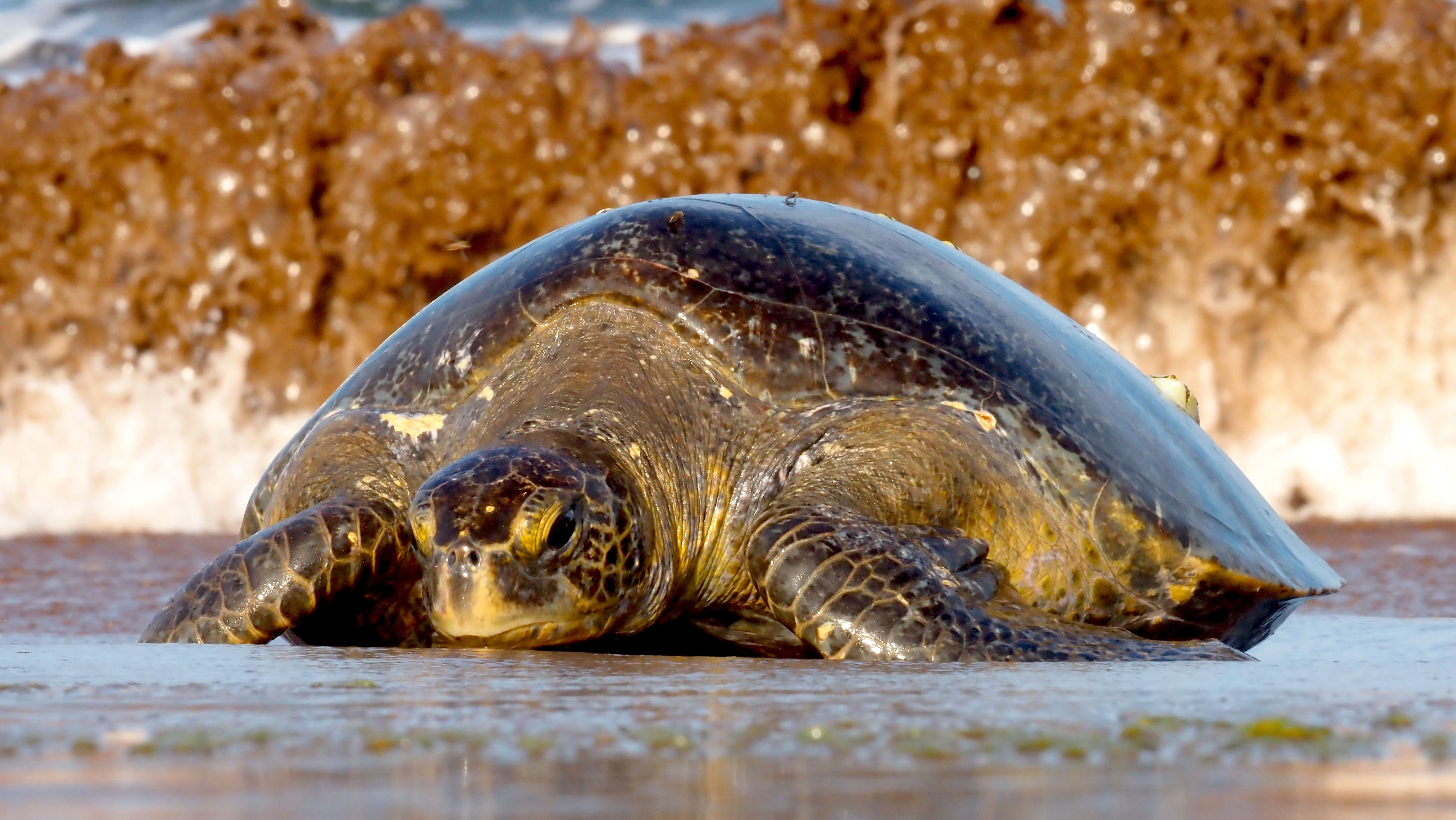 Named after Queen Isabel, Isabela is the largest island in the Galapagos. The island is very volcanic, with current activity on show. Urbina was our landing site with its black sand beach where Pacific green sea turtles annually lay eggs. The sand dunes were marked by activity from last night. The area is vast and vegetated. The island has rich volcanic soil where numerous plants grow to be food for the resting and nesting birds. The plants also provide food and shade for reptiles, like the giant tortoises and iguanas that nest here. Many land birds also like living on the island, which offers room, provisions, and safety for most of the year. We encountered some giant tortoises, a few right in the path. They were immobile and oblivious to our presence.