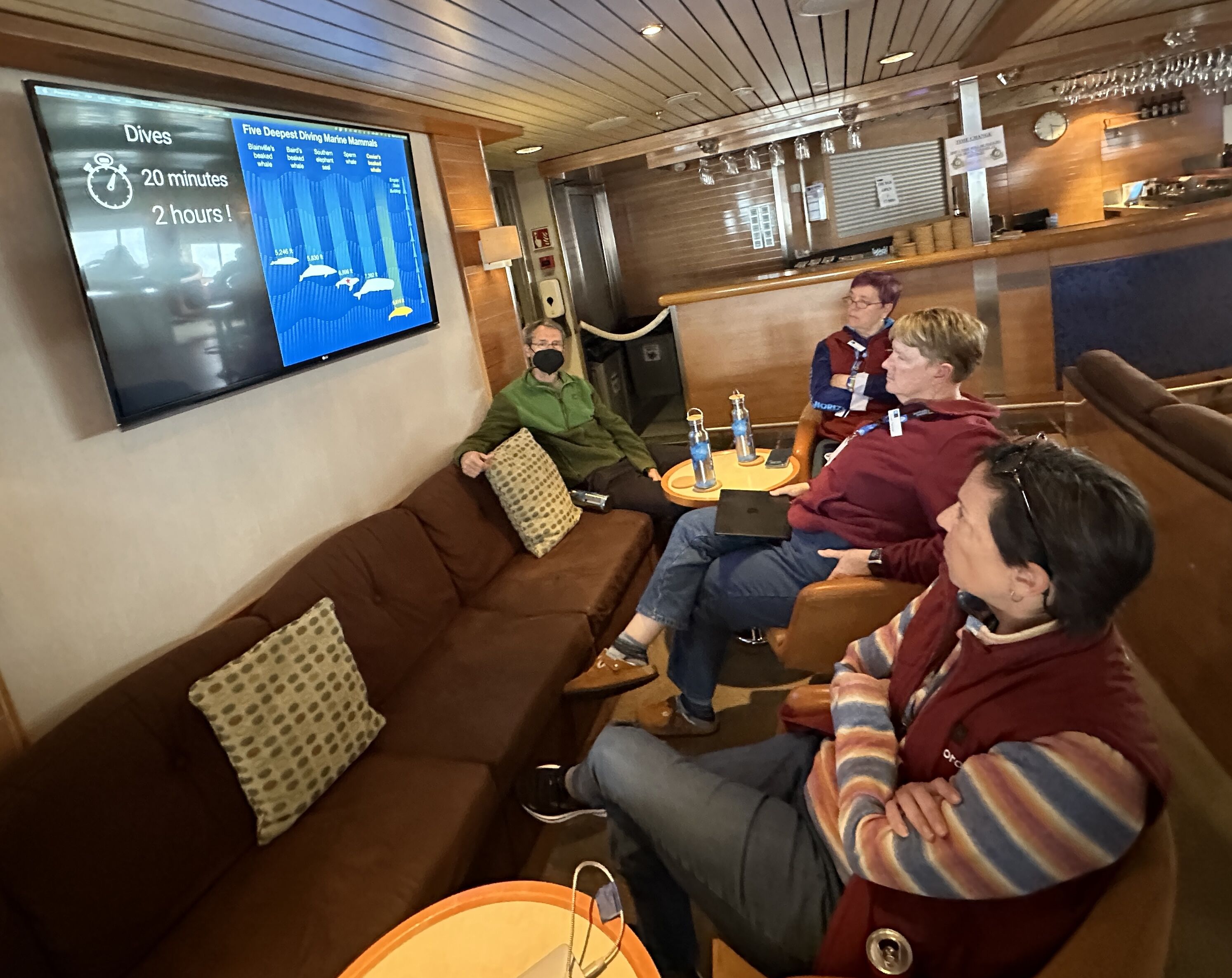 It was a day for reflection. Our journey was coming to an end as we left the Falklands behind and National Geographic Endurance steamed towards South America and Ushuaia. The seas were kind to us, and despite low winds, we had black-browed albatross, among other birds, around us. In the morning, we listened to the naturalists onboard as they presented on different subjects in the ice lounge. Land-ho! Mid-morning we had land in sight, South America was appearing on the horizon. Upon entering the Beagle Channel, we saw possibly a hundred sei whales. While the seabirds were waiting for the wind on the surface, the whales were feeding a short distance from the ship. As our vessel waited for the pilot to arrive, we could still see whale blows in the distance. We enjoyed a teatime extravaganza with Chef Sara and her team. Cheese and wine brought most of the ship’s inhabitants to deck 8, and while sipping wine we watched sea lions, dolphins, and stunning views of Tierra del Fuego go by until it was time for Captain Aaron’s farewell toast. As much as we are reflecting on our expedition today, it has also been a day of celebration! It has been an incredible journey of many miles, great people, and wonderful experiences. Thank you all!