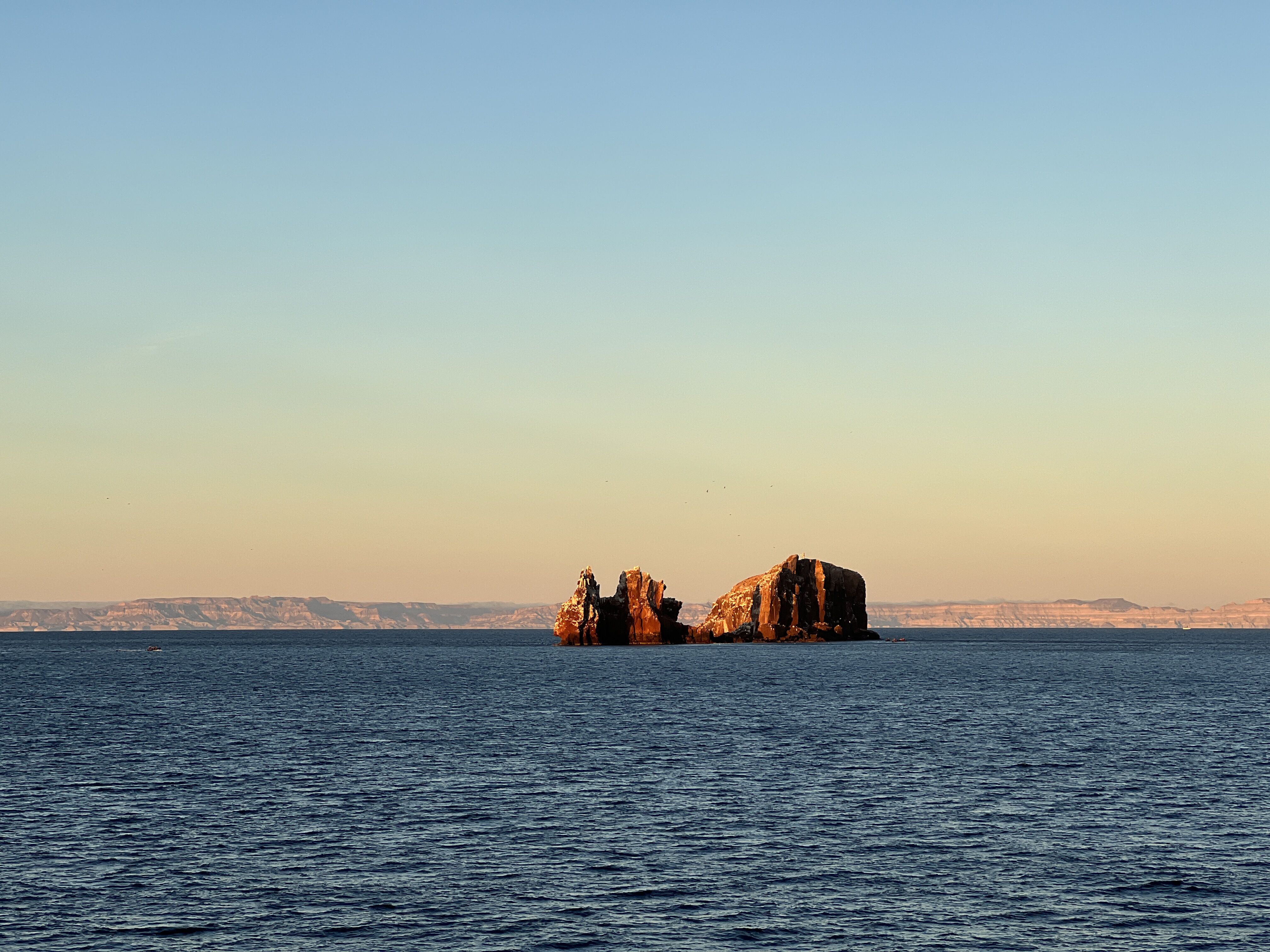 After breakfast, our scouting parties went off in different directions to find the best places to take guests. We settled on one of the islets that is a wildlife sanctuary, and we found many masked and red-footed boobies perched in the trees. Though they are not yet nesting, and many were out at sea for the day, we still saw dozens of birds. Higher up, we saw both greater and lesser frigatebirds, and on the way back to the ship, we spotted some black-naped terns and a fruit dove.