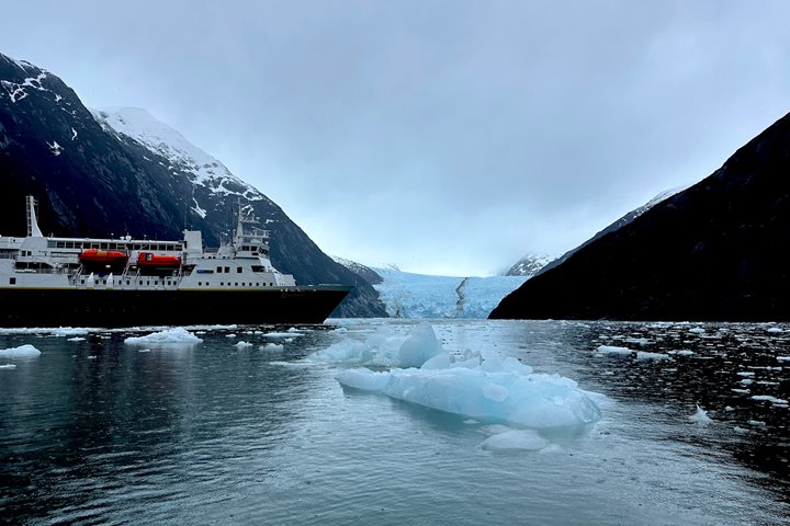 The tall snow-capped mountains surrounding us were beautifully lit by the morning sun, and the vast openness made one feel small and humbled. As we cruised to shore in our Zodiacs, we began spotting the largest existing pinniped, the southern elephant seal. Near the landing site, we saw around 100 Andean condors circling. Upon closer examination, we found the condors feeding on a dead elephant seal - a rare thing to see! We walked over driftwood, through meadows, and into the fungi-heavy forest. Guests who were feeling extra adventurous trekked to a scenic waterfall. It was a wonderful introduction to the southern Chilean ecosystem.