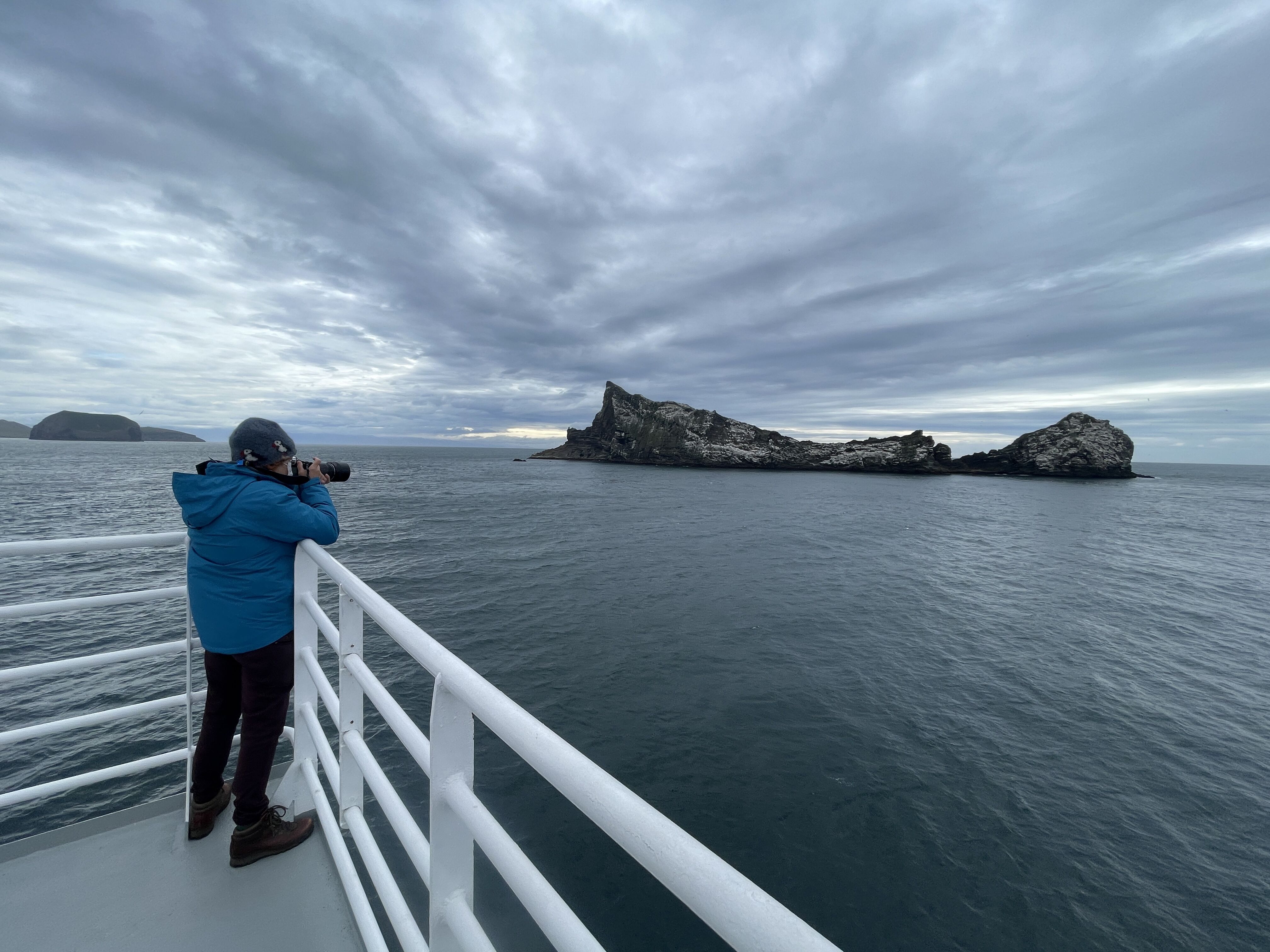 After leaving Devon Island yesterday, National Geographic Resolution navigated west in Lancaster Sound during the night. Early this morning, we encountered a large extension of pack ice off Cornwallis Island. Frozen sea water covered large areas and made a most spectacular and picturesque sight under the low, early morning light. Sea ice is not only pretty but a very important component of the Arctic region. It provides a distinct habitat and platform for algae to grow underneath and feed numerous microorganisms, starting a food chain that ultimately include seals, polar bears, and humans. Many eager eyes searched the ice for some of those creatures. Black-legged kittiwakes and thick-billed murres tried to capture small Arctic cods in the open water while numerous harp seals swam, and a few bearded seals rested on the ice to enjoy the sun. Conditions were perfect, and it was only a matter of time before someone shouted the words that we were all waiting for: “Polar bears!” Yes, a female and her cub were sleeping way ahead of the ship. Everyone headed to the bridge or the observation deck with binoculars and cameras, some still half asleep and trying to wake up with a cup of coffee. The ship approached the bears very carefully. Slowly, that creamy spot in the distance eventually grew into not two but three bears! A second cub was discovered sleeping behind mom, and we all had excellent views as they continued their nap. They looked at us every once in a while but were completely unconcerned with our presence. After getting our fill of such a wonderful site, we backed away slowly and left the trio napping on the sea ice. What a beautiful way to start the day! Shortly after leaving them, a fourth bear was spotted, and many of us had the chance to watch it from Two Seven Zero during breakfast!