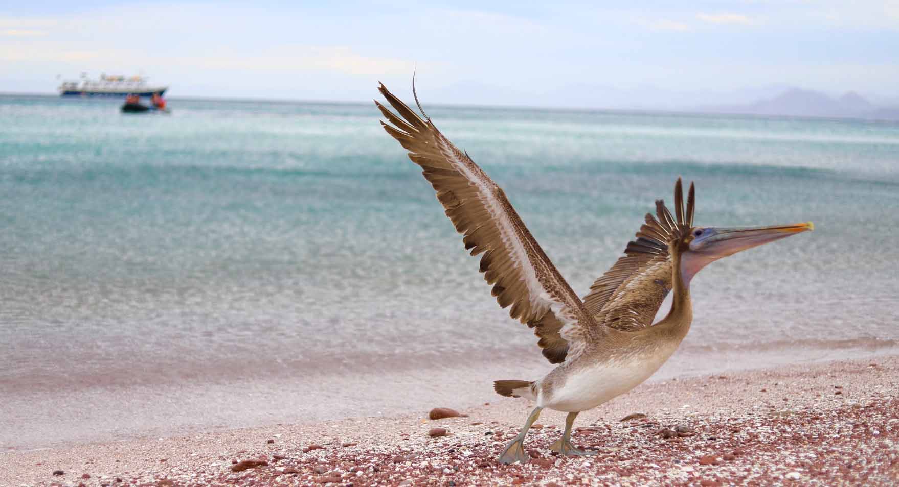 We couldn’t have started the first full day of our expedition in a better way, with a glorious sunrise and a humpback whale singing right next to us! As the National Geographic Sea Bird headed towards the southern tip of the Baja California peninsula, we encountered the whale, and after stopping and lowering a hydrophone into the water, we had the privilege of listening live to the intriguing amazing vocalizations of the whale! That alone gave us a bit more information about that particular whale, as is known that only male humpbacks sing, and they only do so on their winter breeding areas. We listened for a while, some of us even taking advantage of the many capabilities of smartphones to record video clips of the hydrophone in order to capture the whale’s song. Later we continued our previous course and arrived to Land’s End, also known as the Friar’s Rocks, to see the world famous granite arch that has become the symbol of Cabo San Lucas.