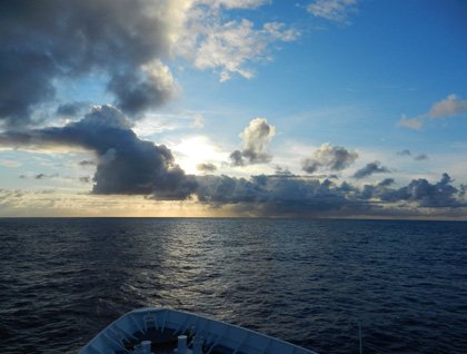 This beautiful and remarkable place is the Gambier Islands, the southeastern most group of French Polynesia. The islands themselves are the remnants of the caldera of an enormous volcano, built on the sea floor by a series of eruptions approximately 10 million years ago. At the climax of that process the peak of this mountain stood much higher above the sea than it does now, but ceaseless erosion by the winds, waves, and tropical rains of the Pacific have slowly carved the island down into the dramatic pinnacles and knife-edged ridges we saw today. At the same time a beautiful coral reef has developed, beginning on the shores of the ancient mountain and growing upward, keeping pace with the erosion and subsidence of the volcano as the corals maintain their place in the sunlit shallows they love. Today the reef rings the remaining islands of volcanic rock, enclosing them in a lagoon that protects them from the swells of the open Pacific and gave us a very pleasant calm anchorage for the night.
