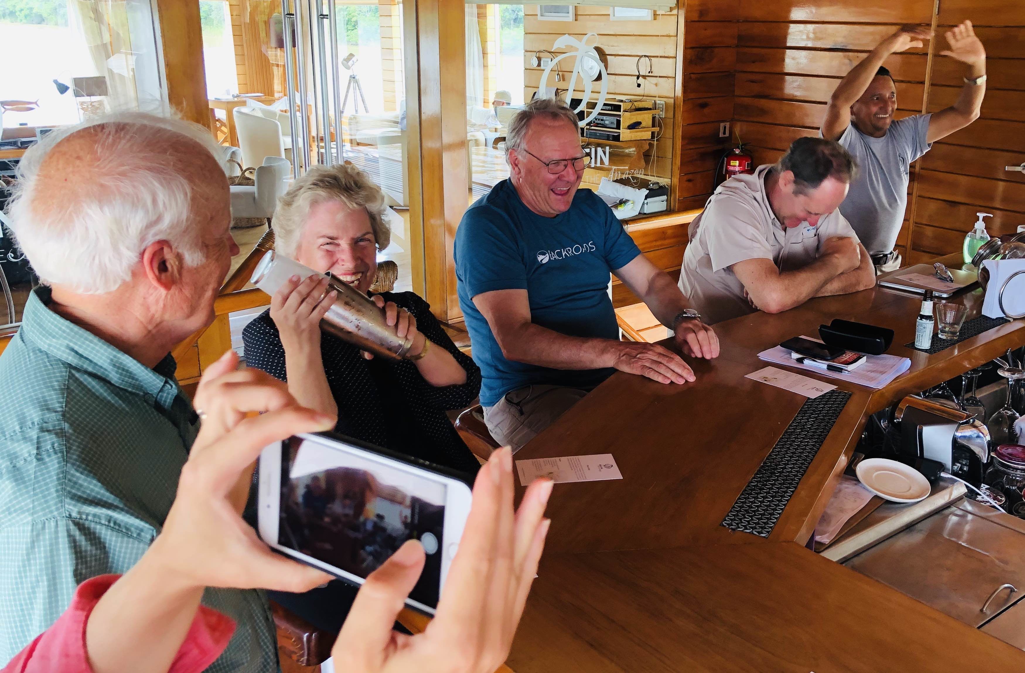 Leaving Delfin II at 06:00 for our morning skiff ride, we explored the Marayali River. The birds were up and working on obtaining breakfast while the three-toed sloths chose to sleep the morning hours away. On our way back to the ship, we encountered a snail kite having its namesake prey for breakfast right in front of us! The rest of the morning was spent at Amazonas Village getting an introduction to life along the river. Demonstrations of how to get sugar water out of cane, how to make and dye fiber for baskets and other items, as well as food preparation were given. We chatted with children who had monkeys as pets! Our evening was topped off by a toast to the beginning of the actual Amazon River, where the Marañon and Ucayali Rivers converge. Salud! This is my final daily expedition report as a full-time Lindblad employee. I am retiring after 21 years as a National Geographic certified photo instructor and naturalist, ready to begin a new life of travel and exploration. I want to give a big thank you to all of those Lindblad guests whom I have traveled with over the years, and I will leave you with these words: Travel as often as you can, as far as you can, for as long as you can. May God and your luggage be with you!