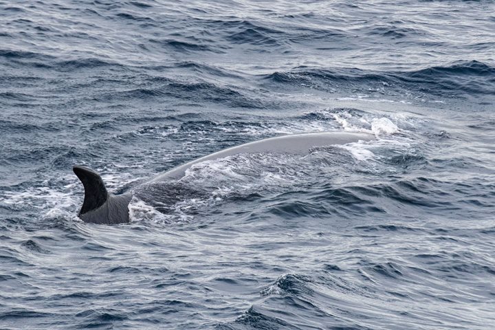 After three wonderful days in New Zealand’s Subantarctic Islands, we are making our way south to Macquarie Island, within the Tasmin State of Australia. Macquarie is a UNESCO World Heritage site, namely for its fascinating geology. The intact seafloor was pushed above sea level by mid-oceanic convergence to form the island. The same ridge that produced Macquarie Island also creates ocean currents that generate biodiverse hotspots, and we were greeted with evidence of just that this morning. During breakfast, we spotted several whale blows in all directions around National Geographic Endurance . We sighted two southern right whales, one of the rarer cetaceans in the Southern Ocean, and numerous sei whales. We were also escorted by a large pod of long-finned pilot whales. The large males and pairs of mothers and calves were just off the bow. They had large, round, shiny heads, white blazes, and beautiful saddles. It was truly a treat to watch them effortlessly move through the water as a unit before disappearing together in one fluid dive. We had two lectures by the photo team. One helped us better understand the phone in our pockets, a.k.a. our smartphone, and the other helped us improve our bird photography. Next up was a lecture on the smell of the ocean by naturalist Conor Ryan. We learned how birds find dense prey aggregations in the vast ocean they call home. The seas were relatively calm, and the fog came and went throughout the day. Albatrosses soared along effortlessly as we moved toward our next destination. The air is getting noticeably cooler. Soon we will lose sight of the vegetation we have been enjoying along with the milder temperatures. We are getting ever closer to the Ross Sea. We are getting closer to Antarctica.