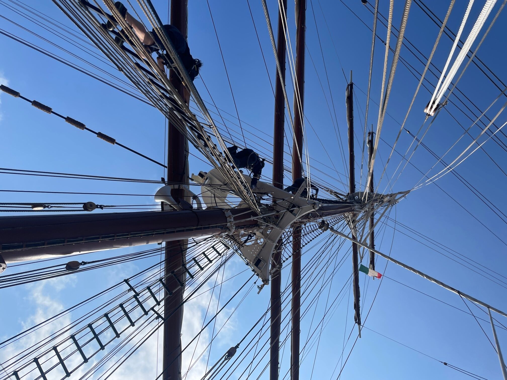 Anticipating rough weather, we woke early today to attempt a morning visit to the city of Amalfi. Unfortunately, the seas were already too rough to safely disembark, and we were compelled to make other plans. We instead spent a quiet morning at sea, including a presentation by National Geographic-Lindblad Historian Rebecca on shipwreck archaeology, a fitting topic for a ship prudently avoiding rough weather. Today’s lunch on the lido deck featured the famous Sea Cloud pasta wheel, a large wheel of Parmigiano-Reggiano in which a delectable pasta is prepared. We managed to dock in Napoli around midday, and interested guests accompanied Expedition Leader John on a walk around some of Napoli’s historic neighborhoods. Our leisurely walk took us past the medieval Castel Nuovo, through the soaring Galleria of Umberto I, and alongside the expansive Royal Palace of Napoli. Back aboard Sea Cloud this evening, we enjoyed the guest slide show during cocktail hour followed by one final, sumptuous dinner in the ship’s elegant dining room.