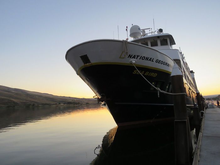 In the afternoon, back aboard the ship, we enjoyed cruising down the Snake River on approach to Lower Monumental Dam. The scenery was stunning, as we imagined how the mega-floods, 100 feet high and 8-mile wide wall of water moving at 50 miles an hour would have plunged through the Palouse, Snake, and Columbia Rivers to shape the landscapes we observe today. Some of us boarded our trusted rubber boats, the expedition landing crafts, and went through the Lower Monumental Dam locks this way, watching how our ship, the National Geographic Sea Lion, negotiates the lock system.