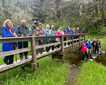 We were surrounded by towering Sitka spruce and western hemlock, and we looked closely at the fallen trees for different species of fungi and lichen. Climbing up the hills, we suddenly found a dramatic change in scenery, as the conifers opened up to reveal a muskeg, a vast bog coated with soggy mosses and beautiful wildflowers. Once we had our fill of photographs, we made our way back down to the ship.
