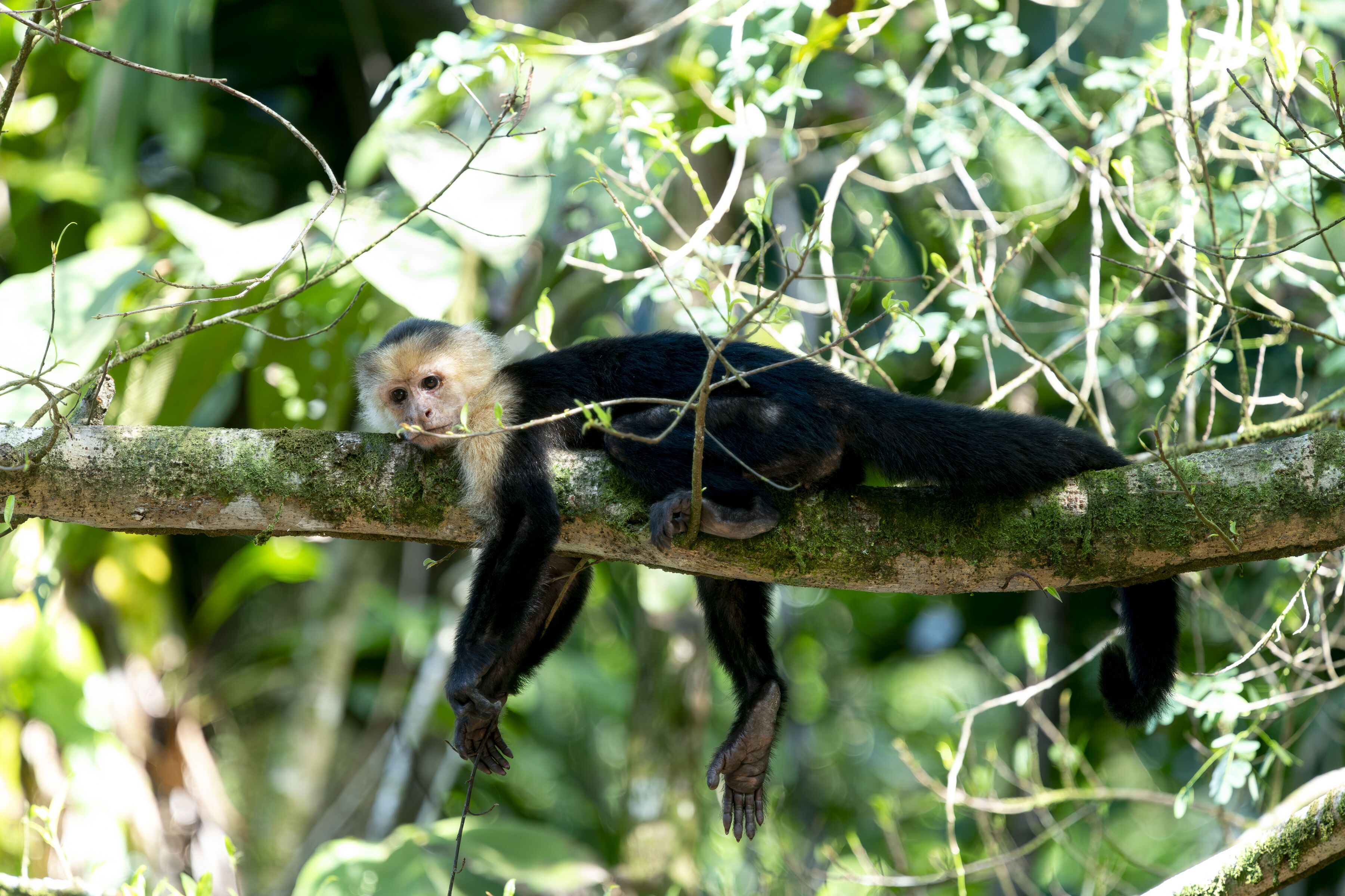 As we walked in the rain, we spotted mammals and birds, such as white-throated capuchins, a common black hawk, black-hooded antshrike, and others. The scenery from the coast was beautiful to see, as it is one of the most dramatic landscapes, where the rocky shorelines are splashed with the ocean waves.