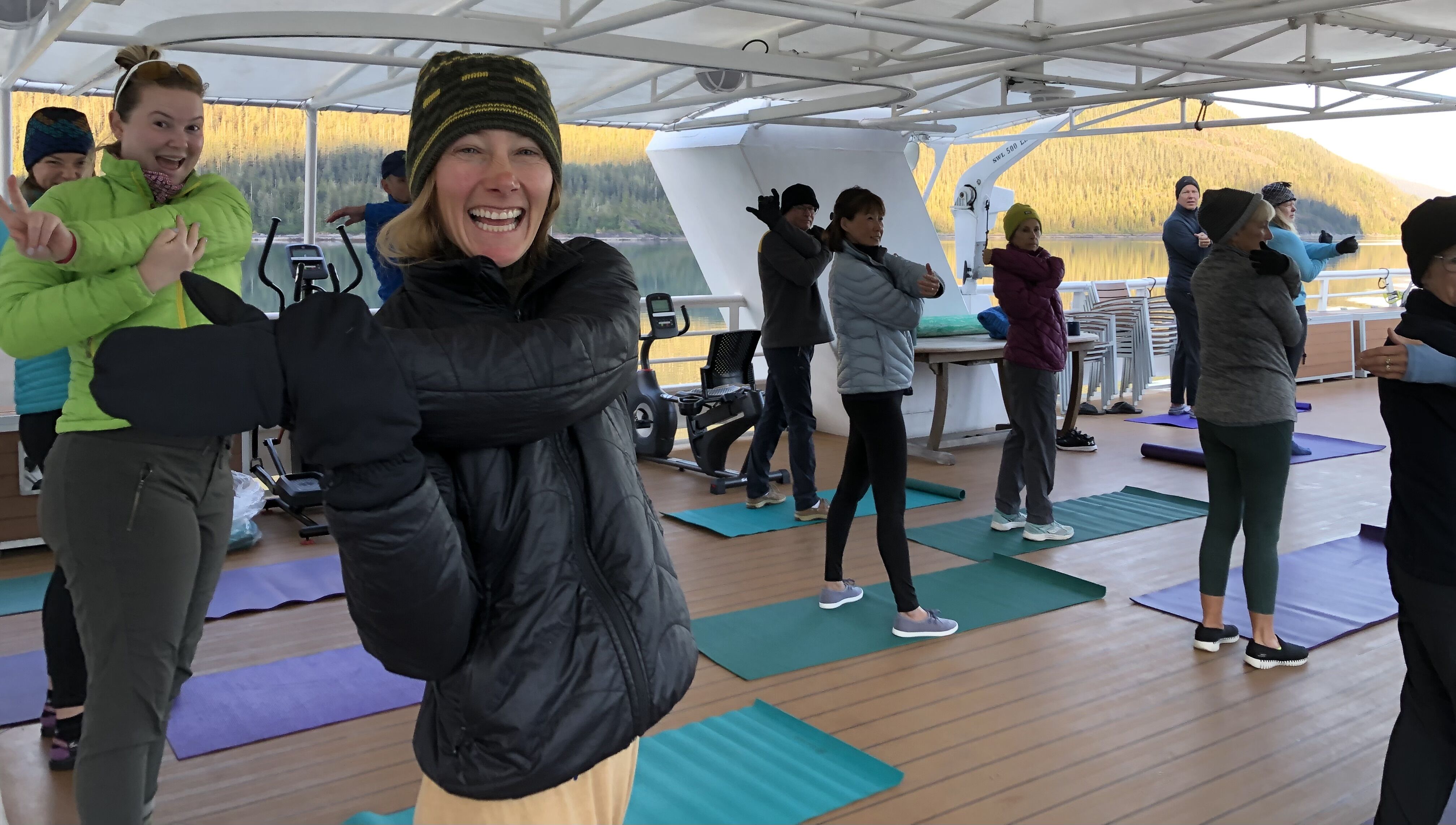 It’s the first full day on board for our group of intrepid explorers on National Geographic Venture, and what a spectacular day it was. The morning greeted us with glass calm waters and sunny skies as we hauled anchor from our overnight anchorage in Fish Bay to get underway. Sabina led an energetic and full stretch class as we cruised through Sergius Narrows, and then guests enjoyed a wonderful breakfast buffet of blueberry pancakes, made-to-order omelets, and fresh fruit. The morning was spent relaxing on board, including a talk on phone photography from Lisa that was interrupted by bow riding Dall’s porpoises. We briefed our excited guests on the ins and outs of hiking and kayaking in Alaska, prepping them for the epic week ahead.