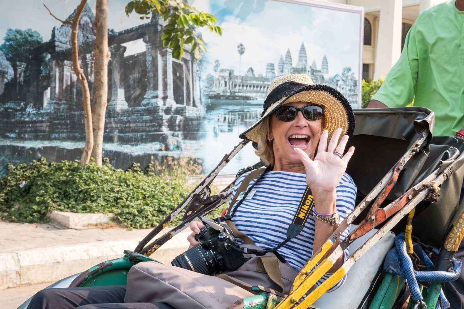 This morning, Jahan was docked at the Cambodian capital, Phnom Penh, and we had one more opportunity to explore the city and see it come to life. The enthusiastic early-bird guests, and birders, ventured out for “golden hour” photography at sunrise followed by wildlife viewing. We first made a stop along an esplanade that overlooks the Tonle Sap River. Photographers honed their skills with gorgeous colors, silhouettes and buzzing action shots of traffic or passersby. We continued our walk near Wat Phnom, where there is a large colony of flying foxes roosting in a tree.