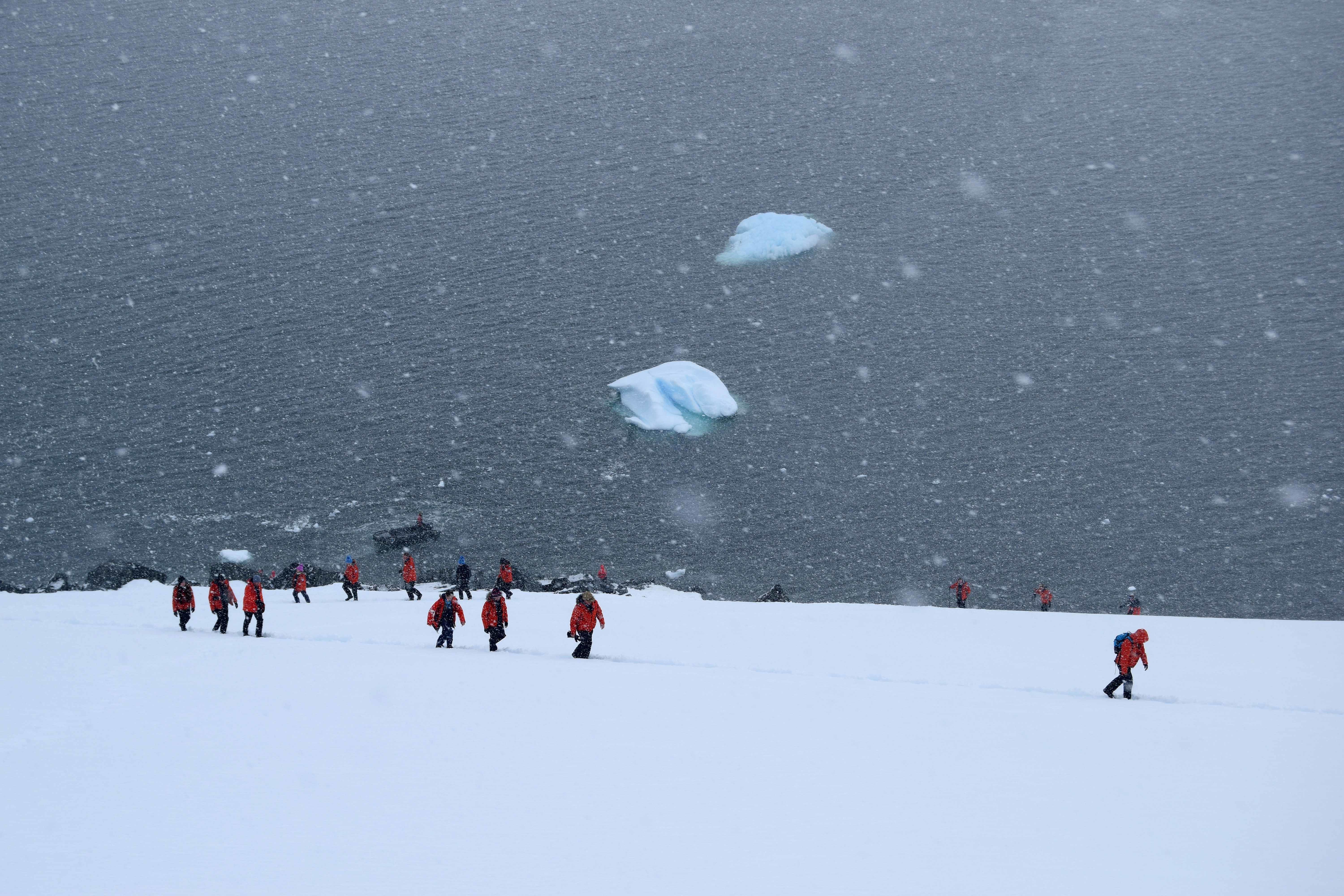 Our first full day on the Antarctic Peninsula today was had so much to offer, it almost felt like two days in one. This morning we sailed through a very picturesque Neumayer with blue skies back dropping steep mountains and hanging glaciers. On our way to our first destination, we were visited by a pod of minke whales. We watched them for a short while before moving on to Port Lockroy, which used to be an anchorage for whalers that was later used as a monitoring base by the British during WWII. Now the museum has the most visited gift shop on the Antarctic Peninsula, and also houses the only registered post office. With the ship parked in the fast ice, we were able to visit the museum and explore the bay, which had plenty of Gentoo penguins nesting and crabeater seals sunning themselves on the ice.
