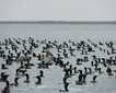 National Geographic Venture weighed anchor early this morning and went in search of marine life. We had the good fortune to cross paths with a couple of pods of common dolphins in a feeding frenzy with pelicans, gulls, terns, boobies, and even a humpback whale! The dolphins came in to surf the pressure wave created as our ship moved through the water. It was a joyous feast of sights and sounds.