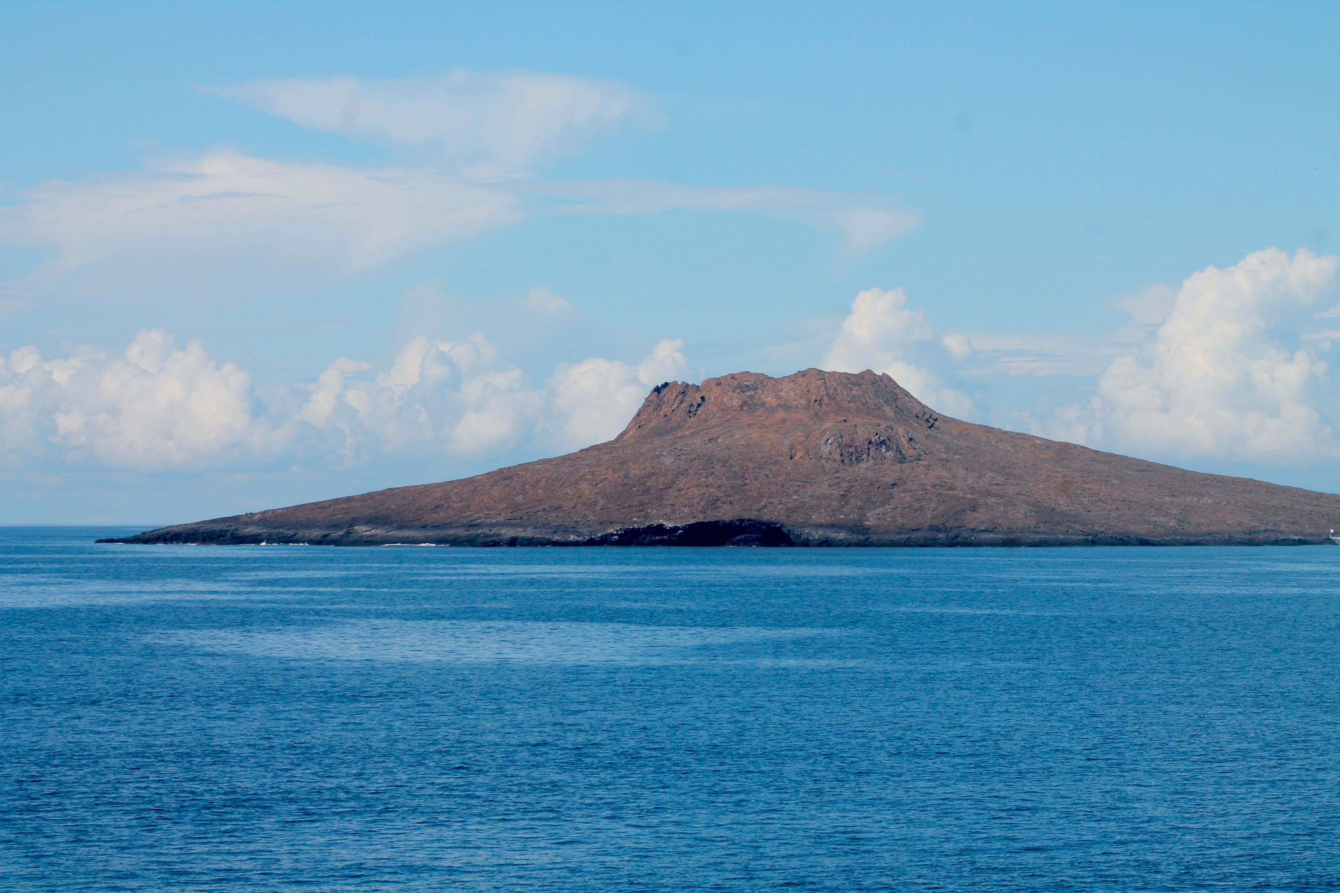 After a great experience looking at the eruption of Wolf Volcano last night, we have arrived on the western side of Isabela Island. We celebrated crossing the equator onboard National Geographic Islander, and then we took our Zodiacs to explore the coastline of Punta Vicente Roca at the foot of Ecuador Volcano. The geology is spectacular. We observed an impressive cliff full of lava dikes, pyroclastic material, and volcanic tuff. Along the shoreline, many birds were resting and nesting. We saw many blue-footed boobies accompanied by their cousins, Nazca boobies. The brown noddy terns collected twigs and branches for nesting. On the black lava, thousands of marine iguanas basked under the sun. Galapagos penguins were the highlight; some of them molted their feathers on the rocks and others looked for small fish in the turquoise blue bay. The flightless cormorant is another interesting bird that nests in the place. These birds offer one of the best examples of adaptation and evolution on the islands. Cormorants fly all over the world, except on the Galapagos Islands. Here they lost their flight ability and instead developed the capability to be great divers. After a Zodiac ride, we came back to the same area to snorkel with penguins, cormorants, marine iguanas, sea lions, and tons of the marine turtles that rest on the sandy seabed in this cove. What a spectacular moment in the water. Being surrounded by so many creatures seemed like a dream.