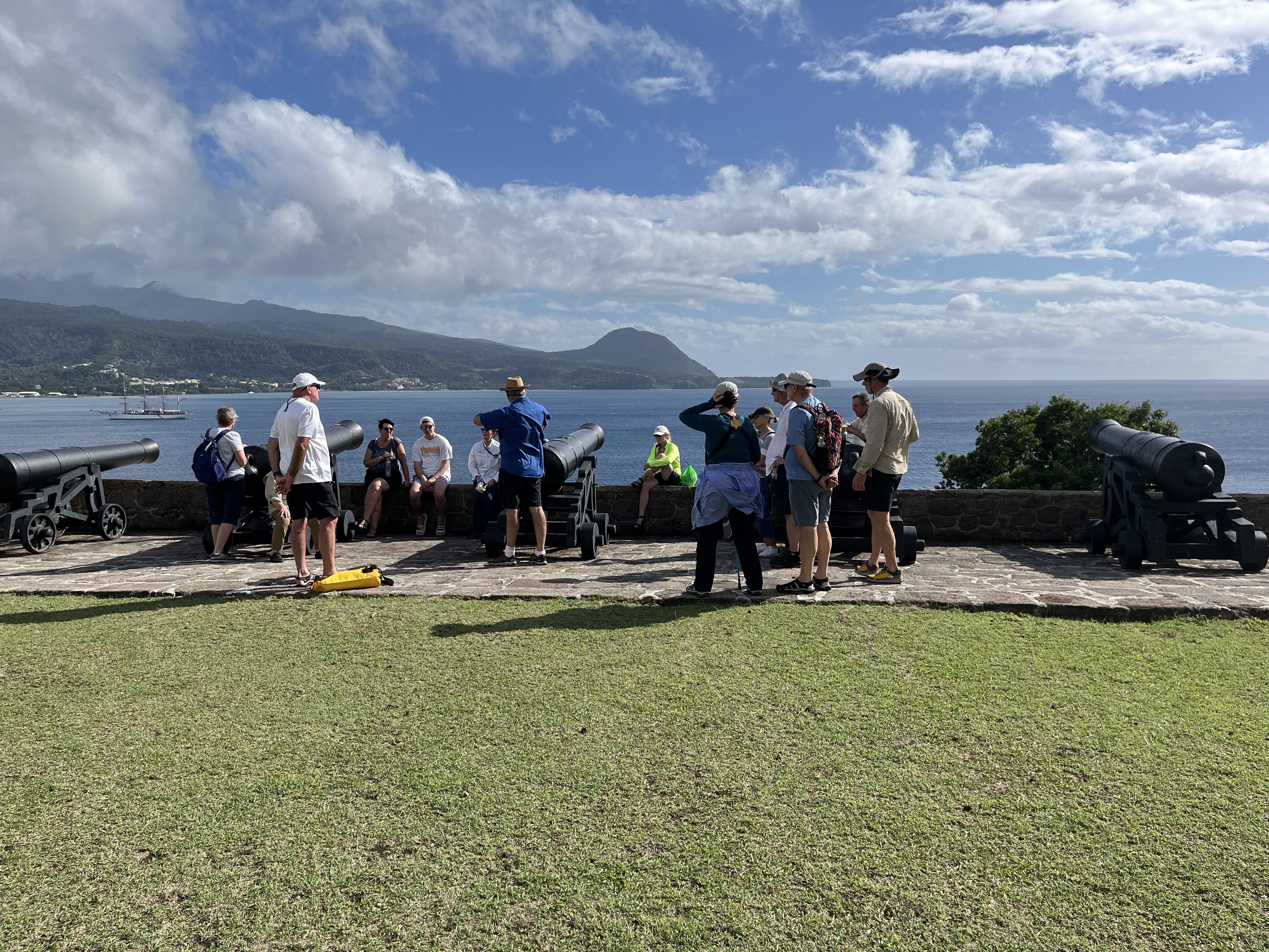 Our adventure in Grenada began with a scenic drive through lush, rolling hills, where spice trees and tropical flowers filled the air with their fragrances. Our first stop was Annandale Falls, a hidden gem nestled within a dense rainforest. A short walk along a shaded trail led us to the cascading waterfall, its crystal-clear waters tumbling into a natural pool. Some guests took a refreshing dip, while others enjoyed watching local divers perform intrepid jumps from the rocky ledges. The vibrant greenery and the sound of rushing water created a peaceful and invigorating atmosphere. Next, we visited a chocolate factory. Grenada’s rich volcanic soil nurtures some of the world’s finest cacao. We learned about the traditional methods of growing, harvesting, and fermenting cacao beans. A tasting session delighted our senses, revealing the deep, complex flavors unique to Grenadian chocolate. We finished the excursion at Frederick Fort, with an incredible view of the bay. It was a day of discovery, indulgence, and appreciation for this Caribbean treasure.