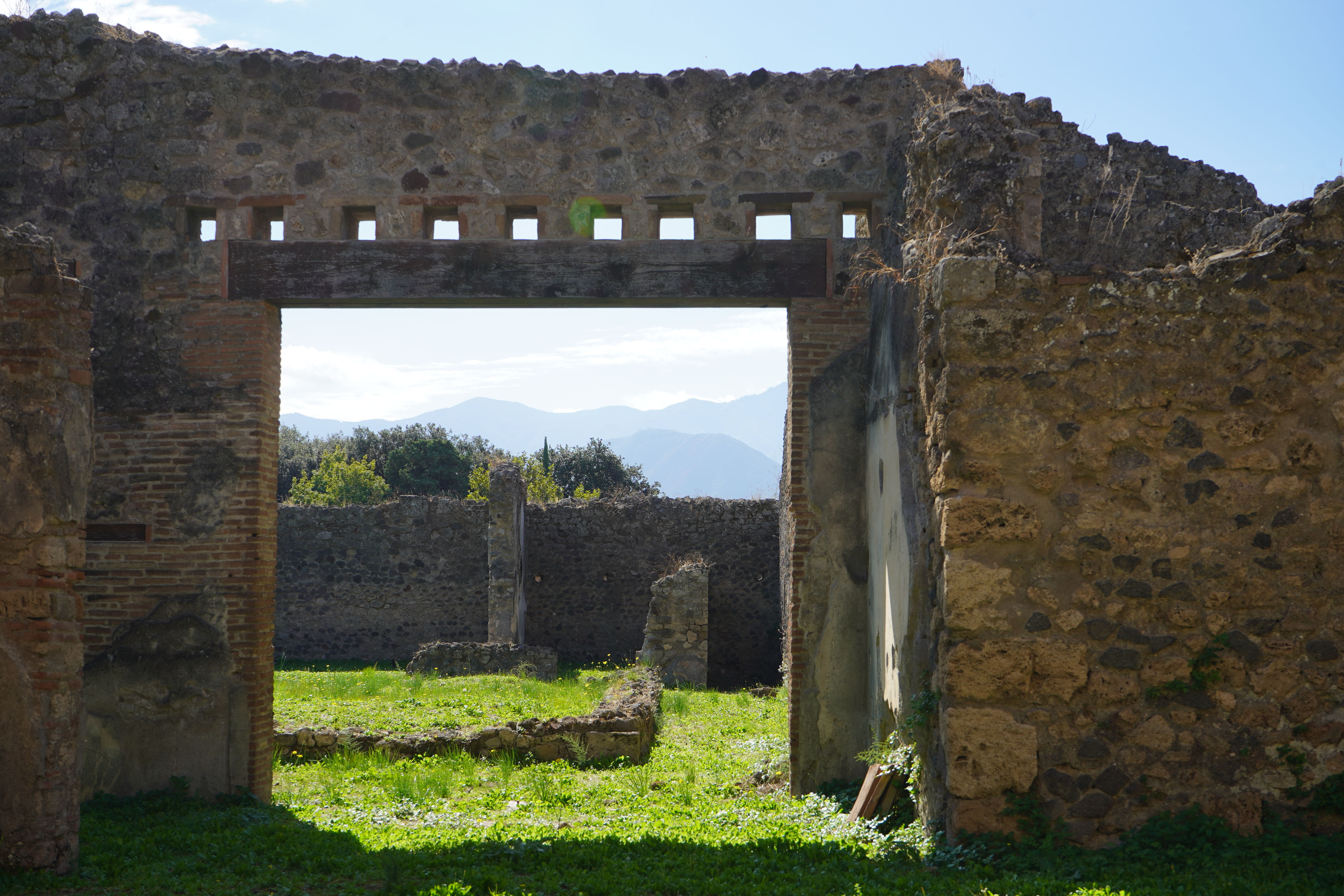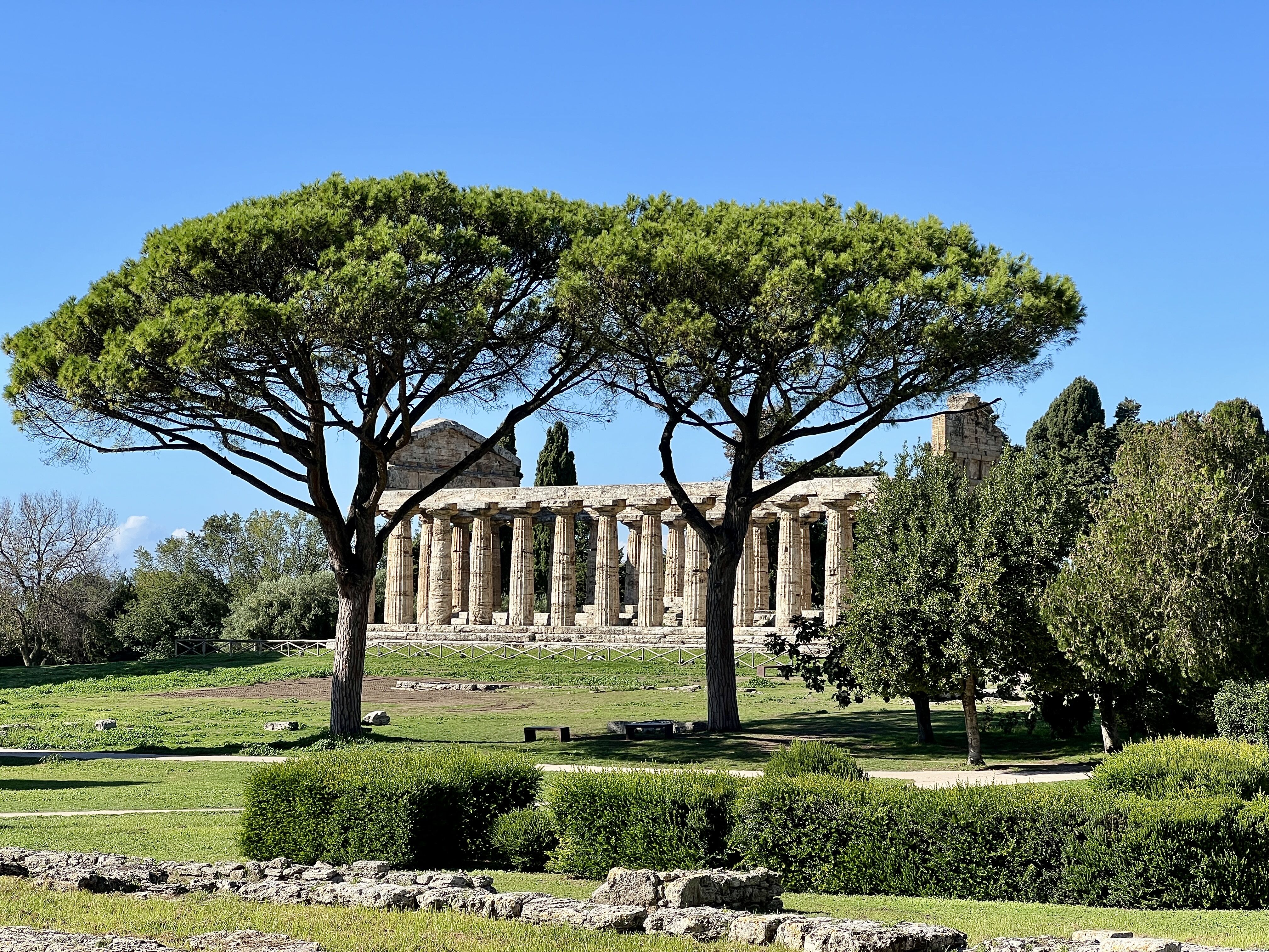 Our guides deftly moved our groups into the remains of the ancient port city, destroyed by the eruption of Vesuvius on that fateful August day in 79 AD. We entered the city gates and arrived in the gymnasium where gladiators were known to have trained. Adjacent to this, we viewed the well-preserved remains of an odeon and much larger theater. From there, our guides made judicious choices of which roads, shops, houses, and baths to visit; they gave us the full experience of the city while avoiding the many other visitors to the site. It was only toward the end of the visit that we really joined the throngs — but this made sense as we were in the forum, the gathering spot of the ancient city.