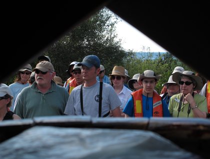 We started our day sailing the calm waters in the vicinity of San Marcos and Tortuga Islands; the light breeze and lack of clouds in the sky made a great combination for a very nice morning. We watched numerous flocks of phalaropes –small, sea-going migratory birds related to the sandpipers- sitting in the water or flying around, brown boobies plunging trying to capture fish and even the occasional pomarine jaeger or red-billed tropic bird. However, what really made our morning was a group of several fin whales! The second largest whale after the blue, the fin whale is also one of the most handsome, with whitish chevrons and dark blazes on its back and a white right lower jaw (the left one is all dark!). Although the species is found in all the world’s cold and temperate oceans, there is a resident population here of around one thousand individuals that never leaves the Sea of Cortez.