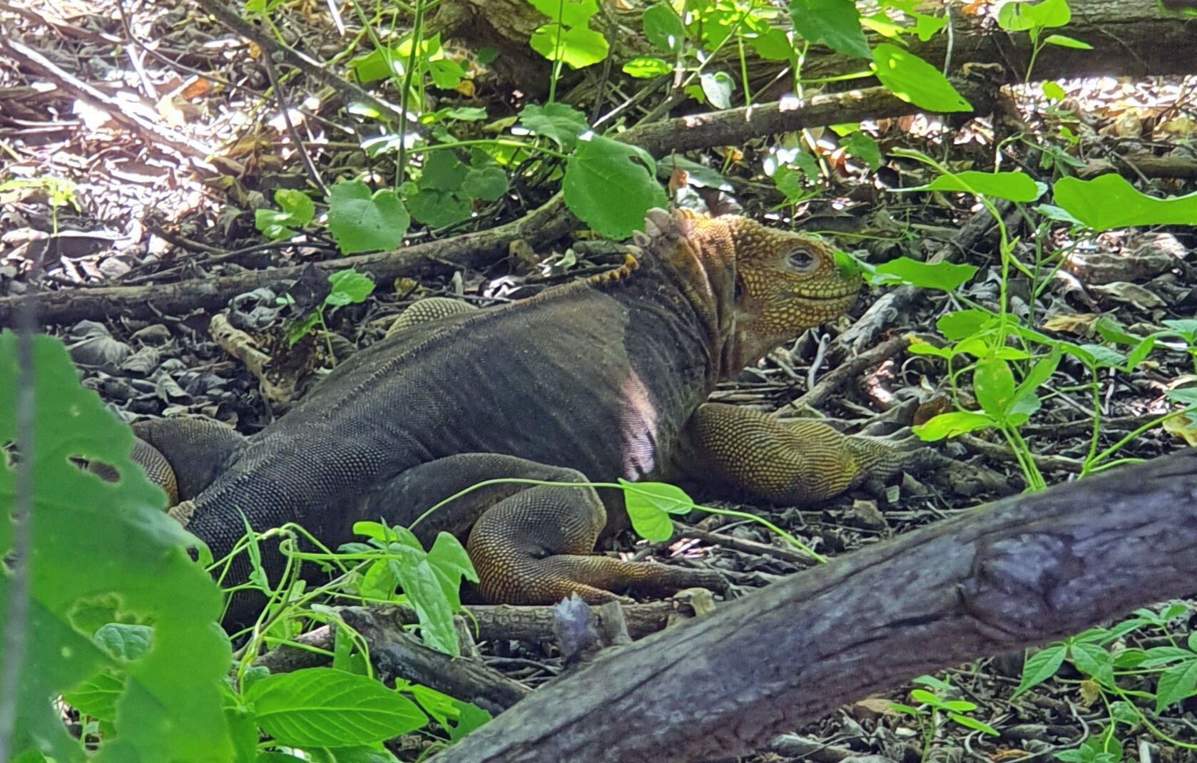 Just a few feet from where we started, we found a female tortoise feeding on the vegetation of the area. We kept walking to a pond where tortoises gather to cool off in the water; they use the mud to protect their skin. We stopped for a few minutes to appreciate the beauty and magnificence of these giant reptiles enjoying the water.