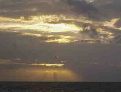 After so much entertainment on this small island we came back to the National Geographic Islander to have a brief boat ride by a small volcano islet that has a crater lake. This brackish lake holds a small population of greater flamingoes. Our guests sighted many of these pink creatures that were nesting close to the lake from the sky deck. Later in the afternoon we landed on the southeastern side of Santiago Island on a visitor site known as Sullivan Bay. This unique place is fascinating for geologists due to the fact that we can walk over recent pahoehoe lava flow formations which is covered with interesting textures and tree molds on the surface. Our day was better than outstanding-Mother Nature treated us to a beautiful sunset while the night sky turned into different colors.